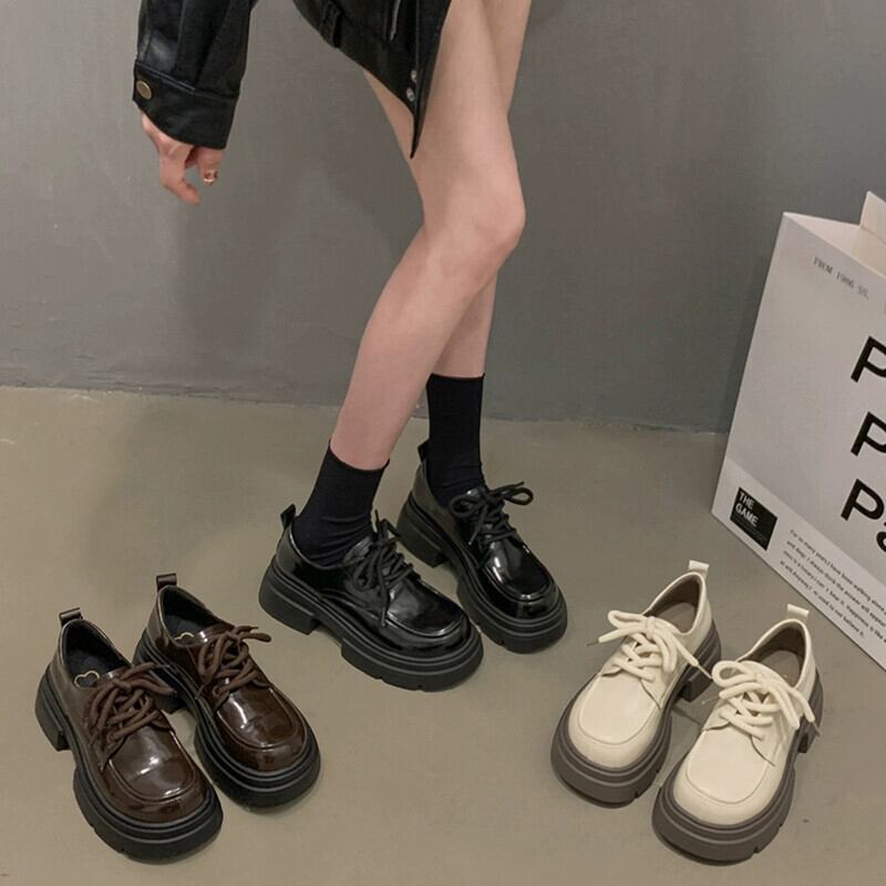 Jia Bujia 女性の小さな革靴 2024 春と秋の新スタイル超人気英国スタイル多用途レトロ厚底ストラップシューズ スプリング 春物 オータム 秋物 レザー jxjxf42986996110