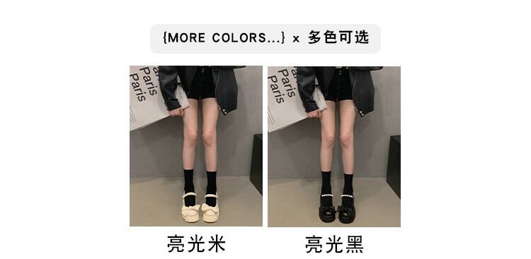 Jia Bujia レディース メリージェーンシューズ 2024 春弓パールマッチングスカート太いヒール小さな革靴 リボン スプリング 春物 レザー 真珠 jxjxf90350712343