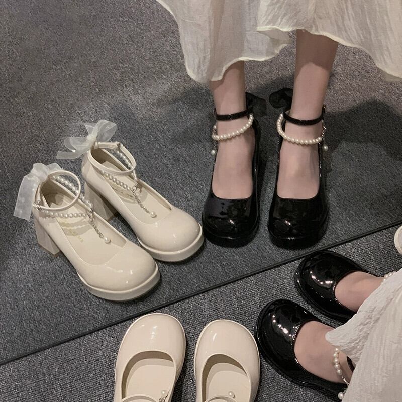 Jia Bufake メリージェーンの靴の女性の 2024 春と秋のヒール太いヒールレトロマッチングスカート小さな革の靴 シューズ スプリング 春物 オータム 秋物 レザー jxjxf45863211323