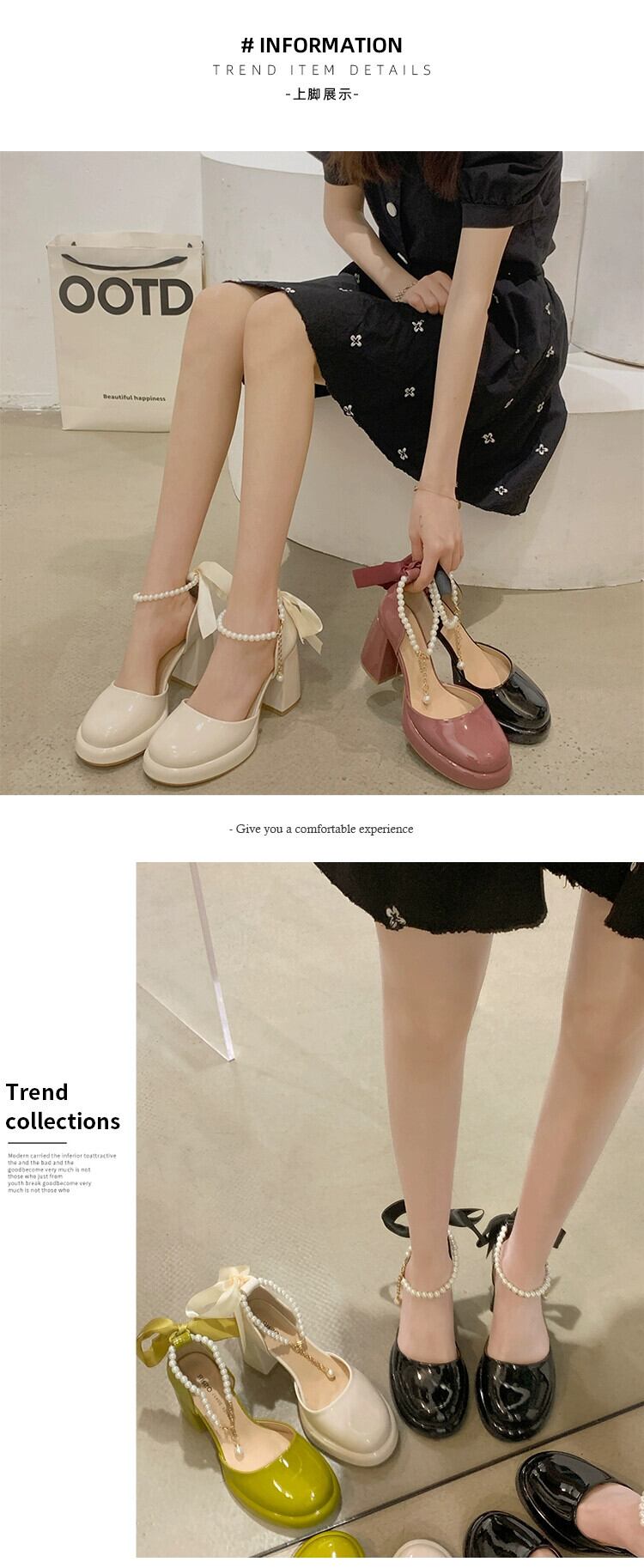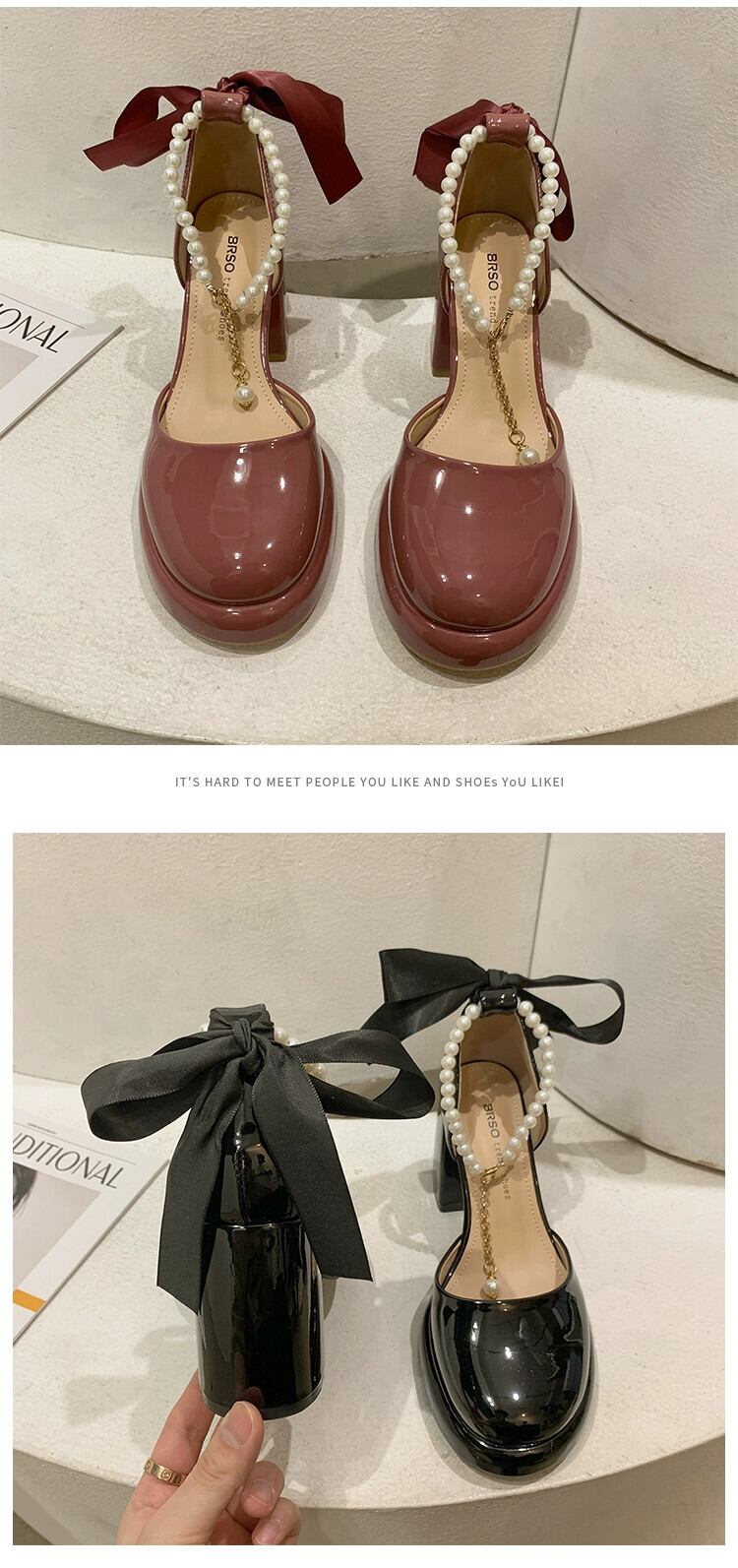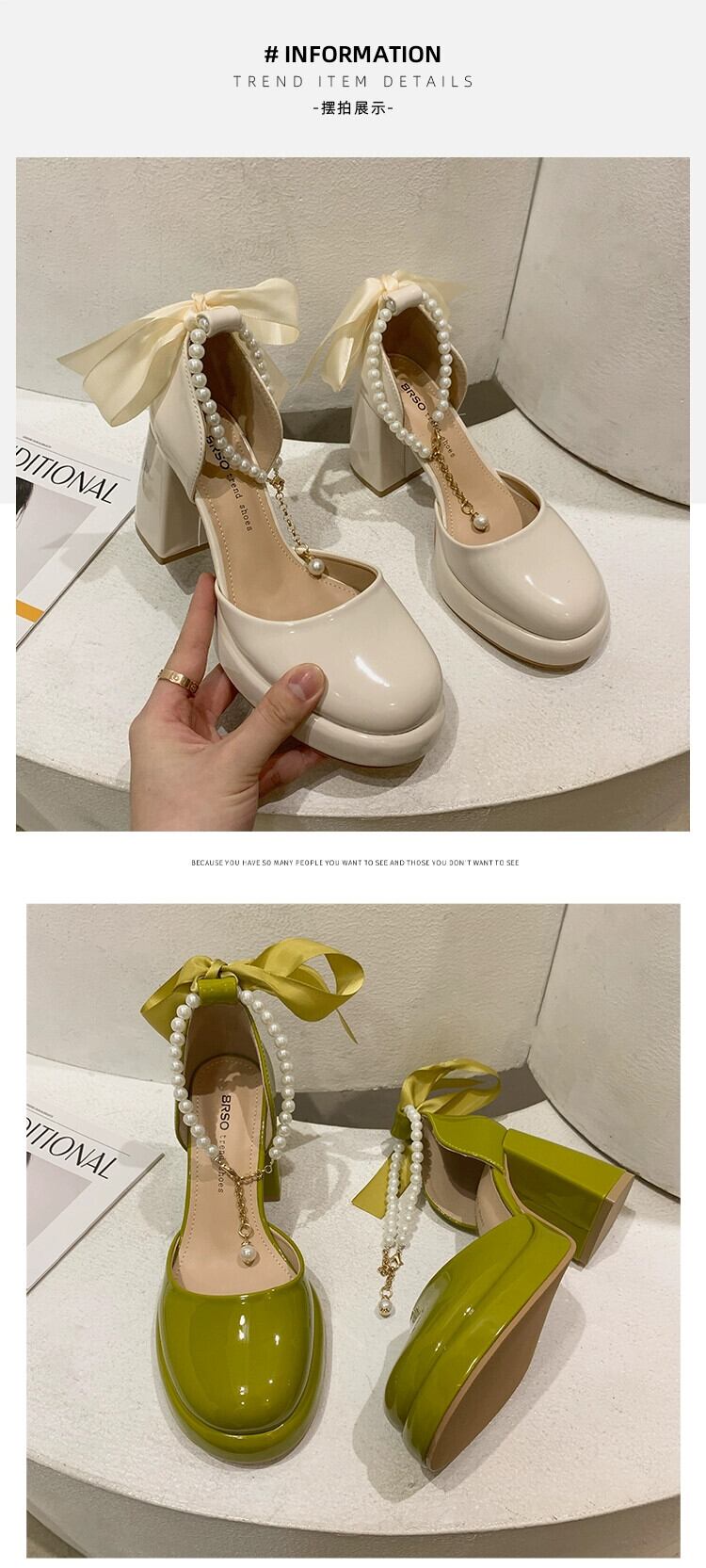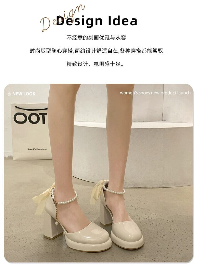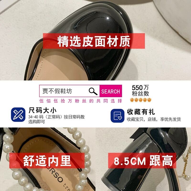 Jia Bujia メリージェーンシューズ レディース 2024 春と秋のフレンチスタイルのパールリボンヒールシューズ 靴 スプリング 春物 オータム 秋物 真珠 jxjxf83711435593