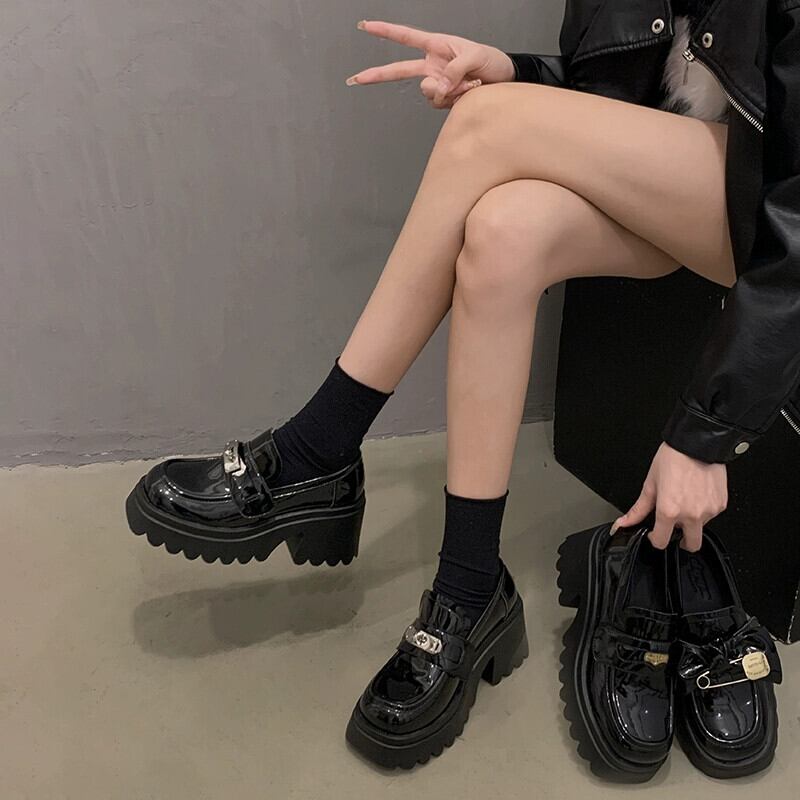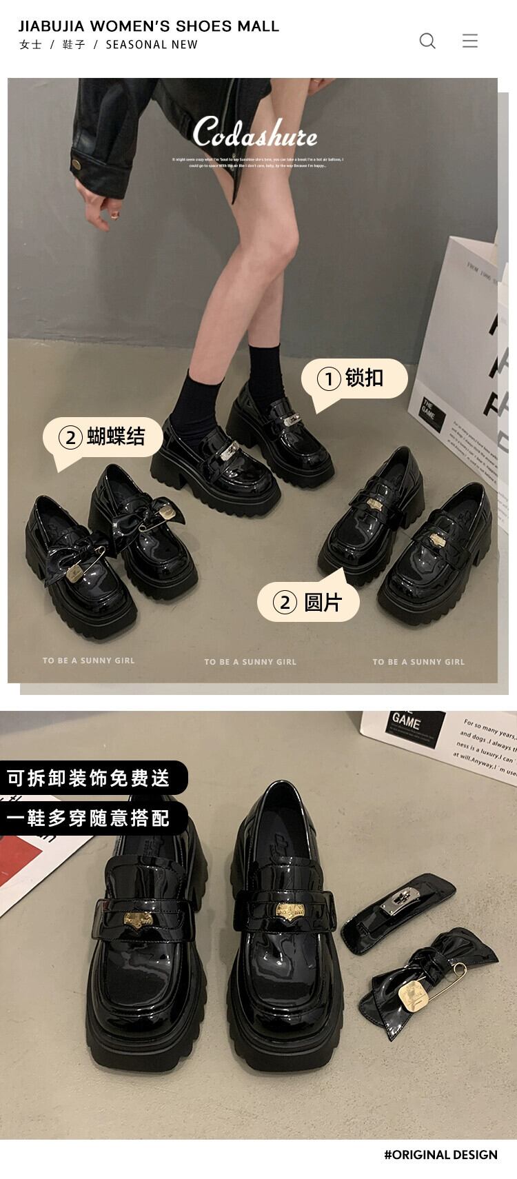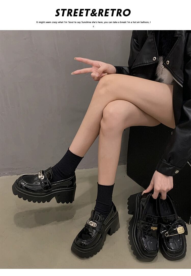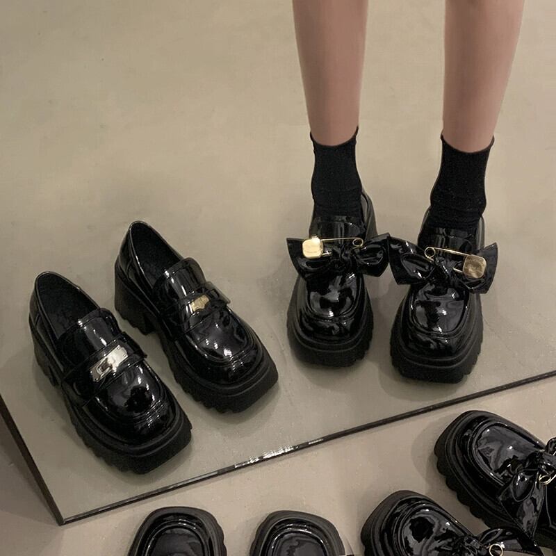 Jia Bujie のシングルシューズの女性の 2024 春と秋の新しいファッション金属弓厚底ローファー 靴 リボン スプリング 春物 オータム 秋物 jxjxf54932692228