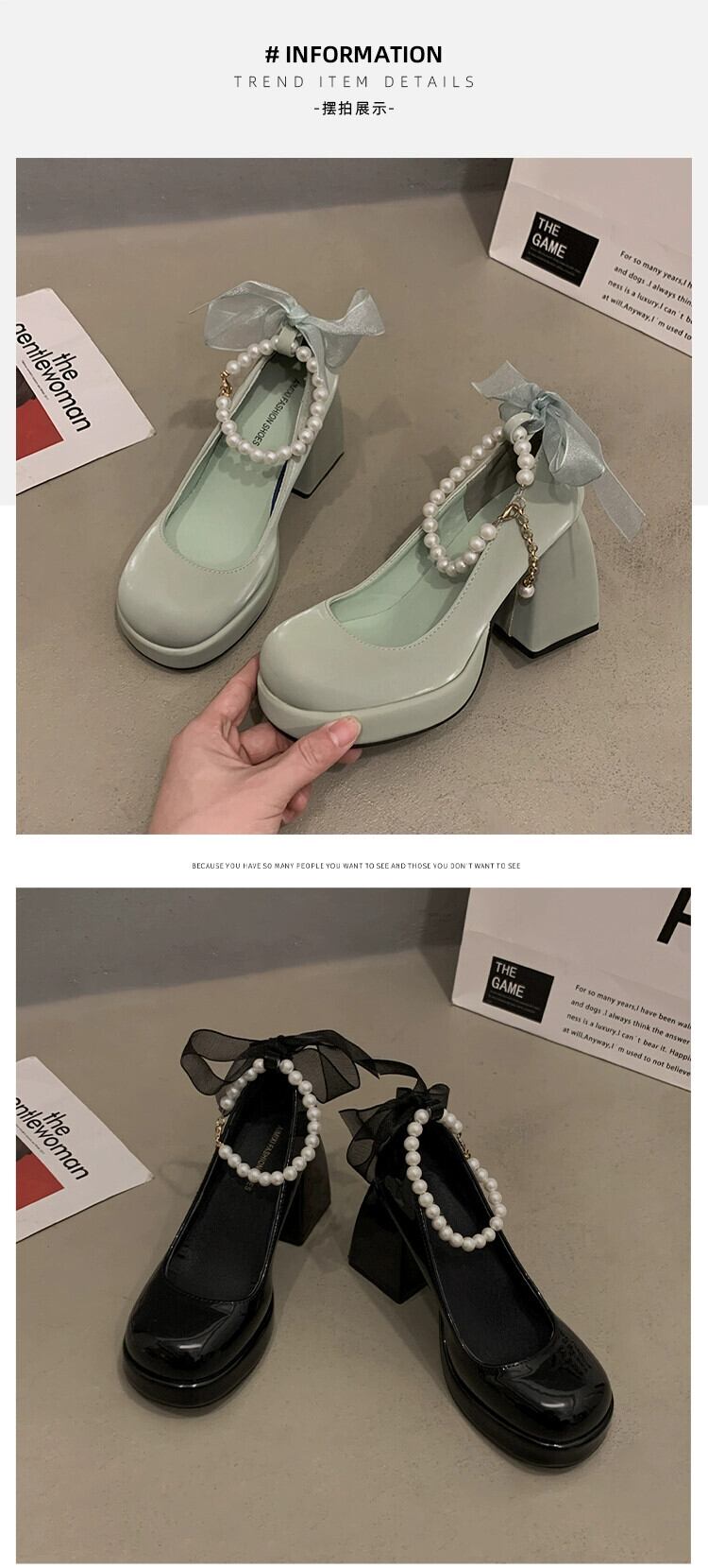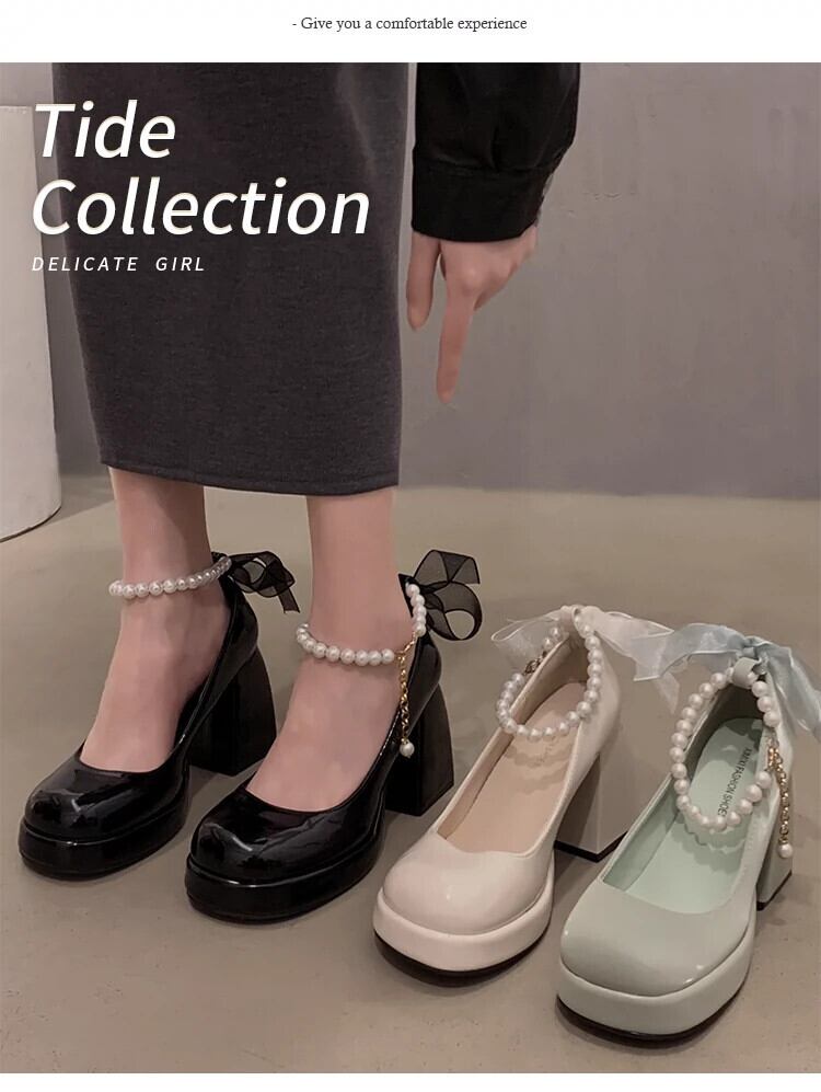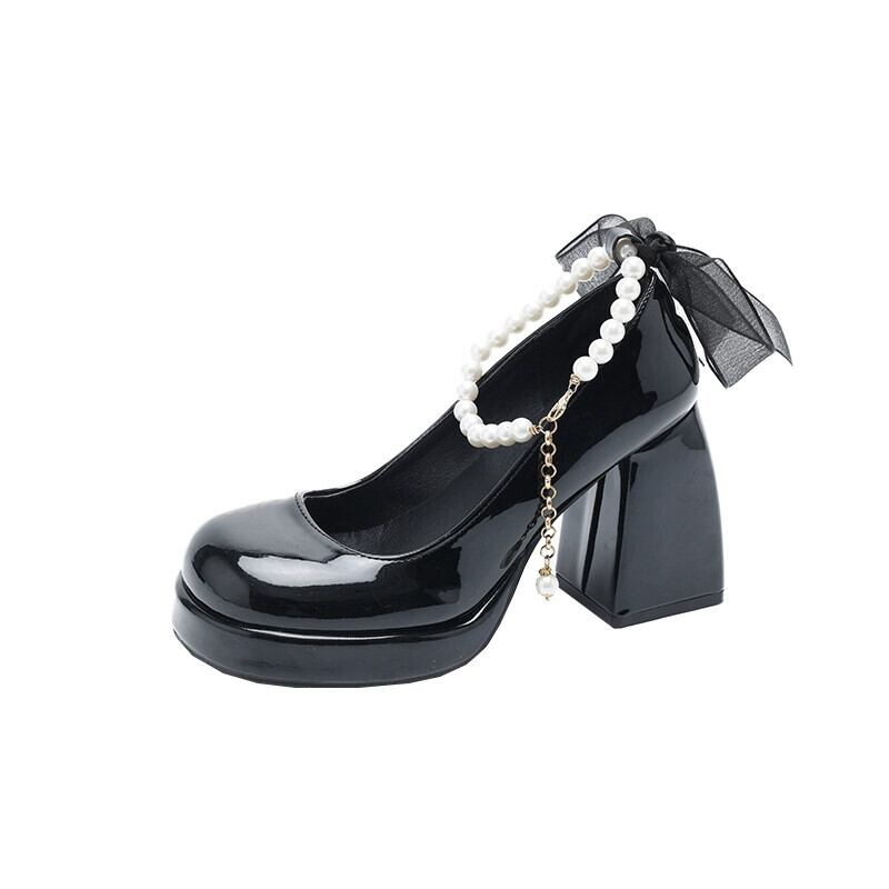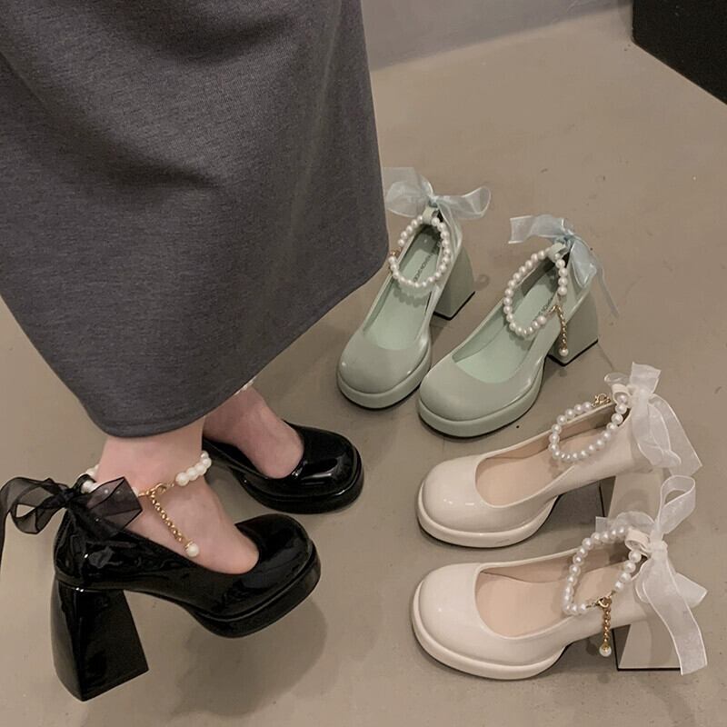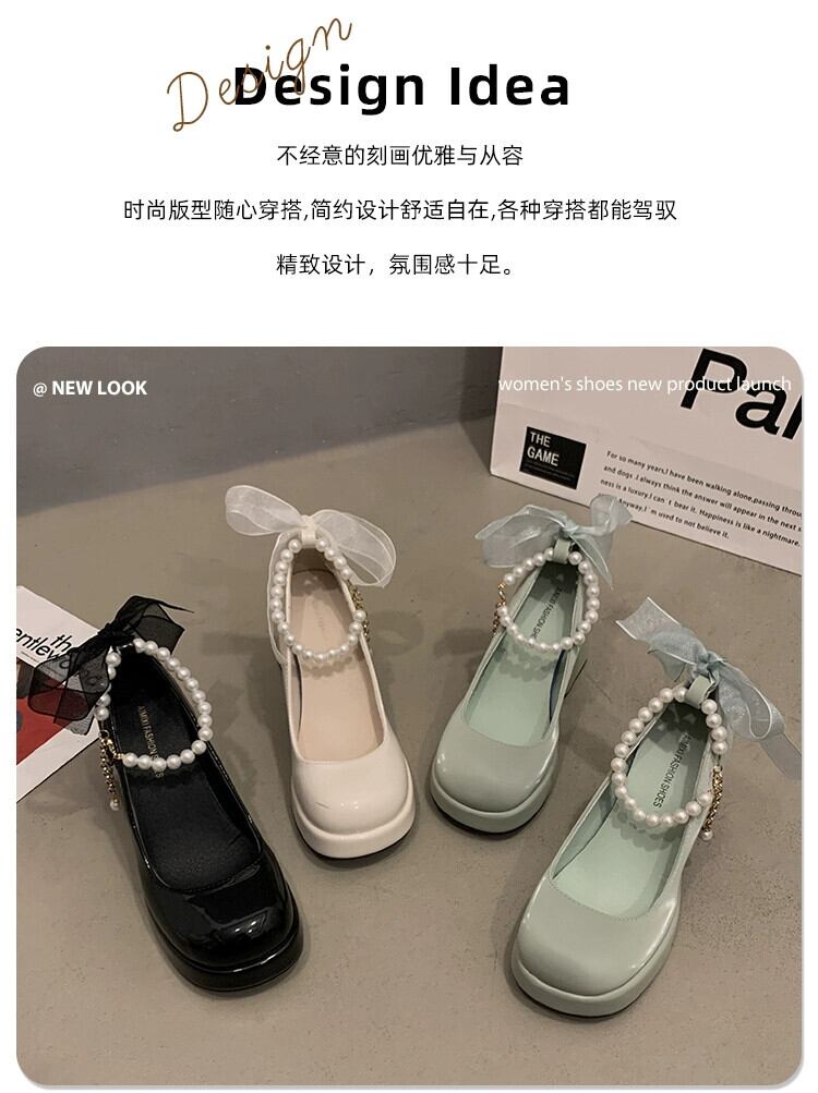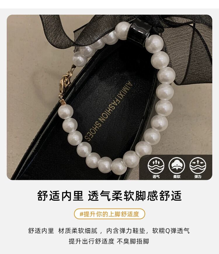 Jia Bujia 婦人靴 2024 春レトロ多用途パールスモールヒールメリージェーンシューズ スプリング 春物 真珠 jxjxf24458585590