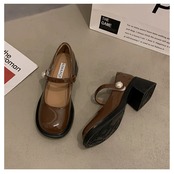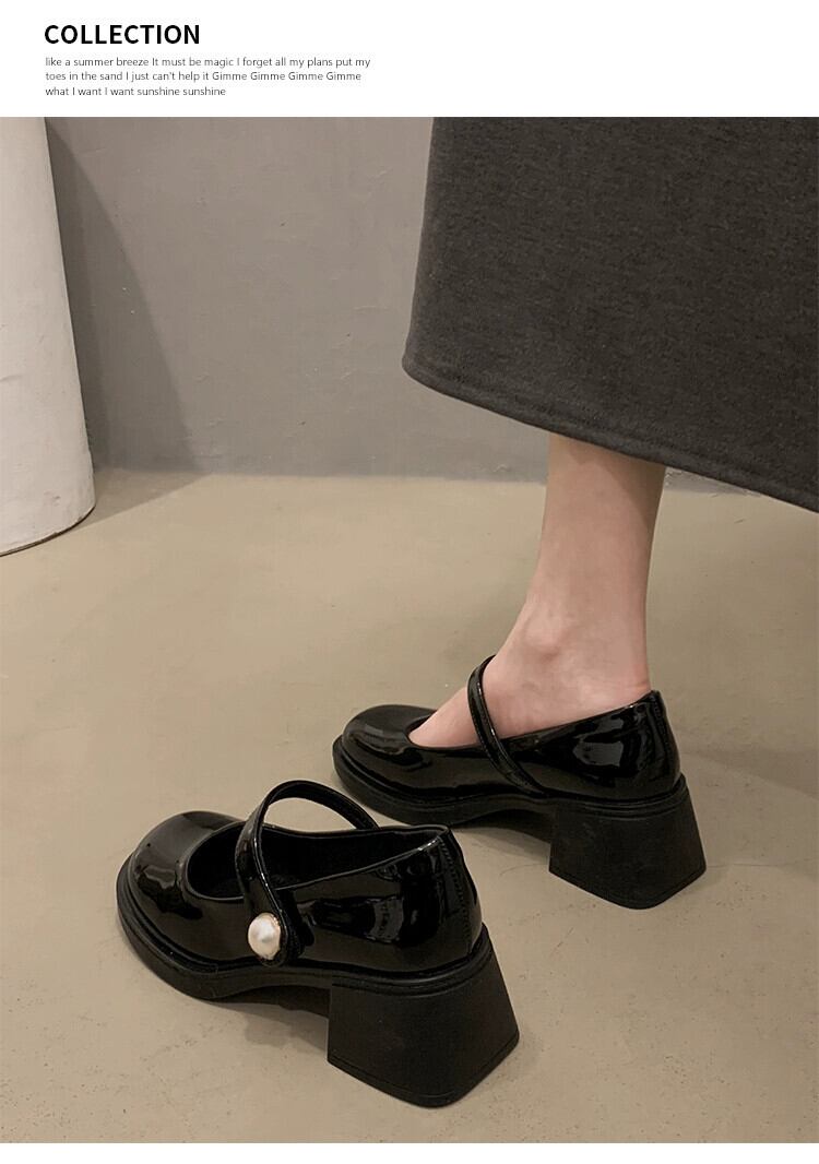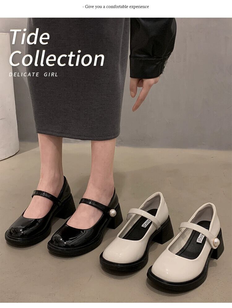 Jia Bujia インターネット有名人の小さな革の靴の女性 2024 春の新スタイルのスーパーレトロパールベルクロ厚いヒールメリージェーンの靴 シューズ スプリング 春物 レザー 真珠 jxjxf46180250255