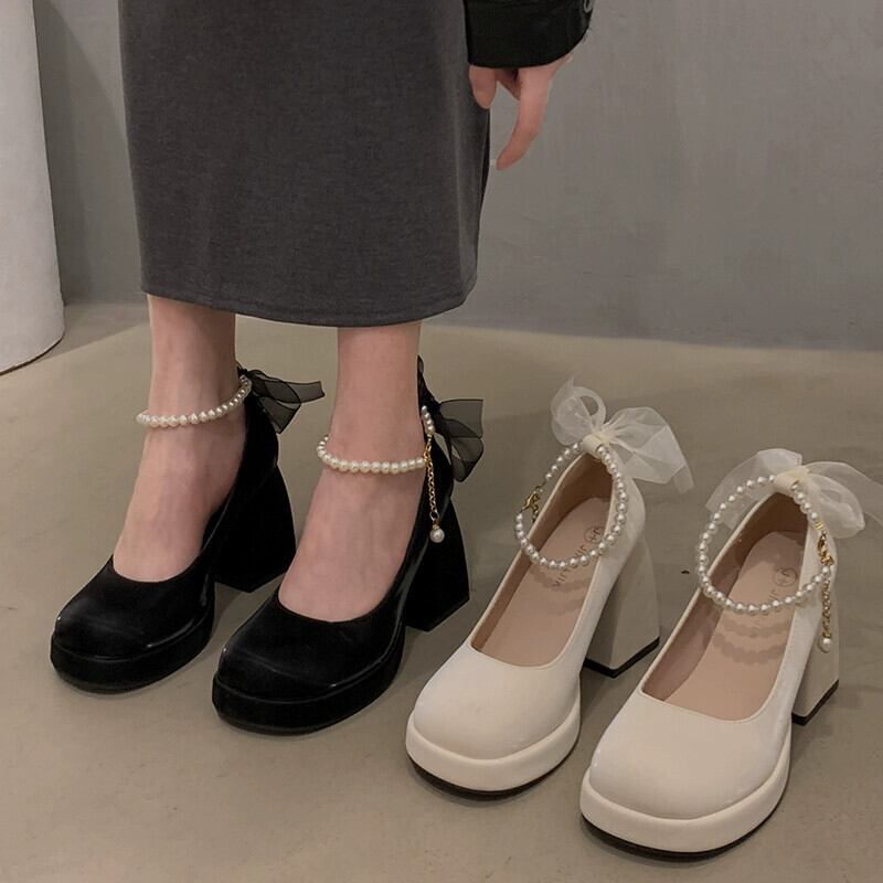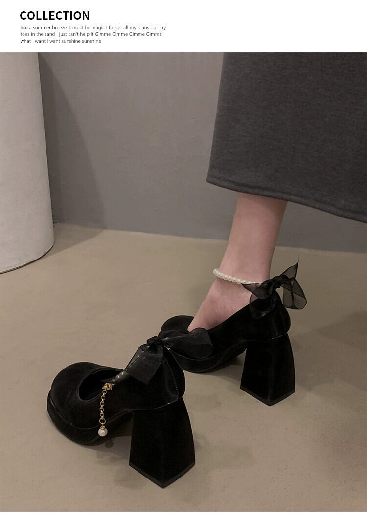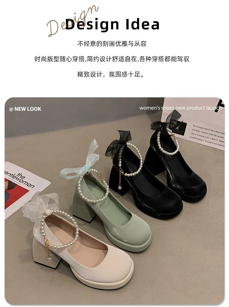 Jia Bufake メリージェーンの靴の女性の 2024 春インターネット有名人レトロ百マッチングスカートヒール小さな革の靴 シューズ スプリング 春物 レザー jxjxf96795255056