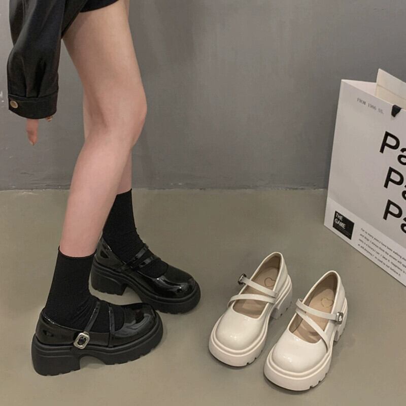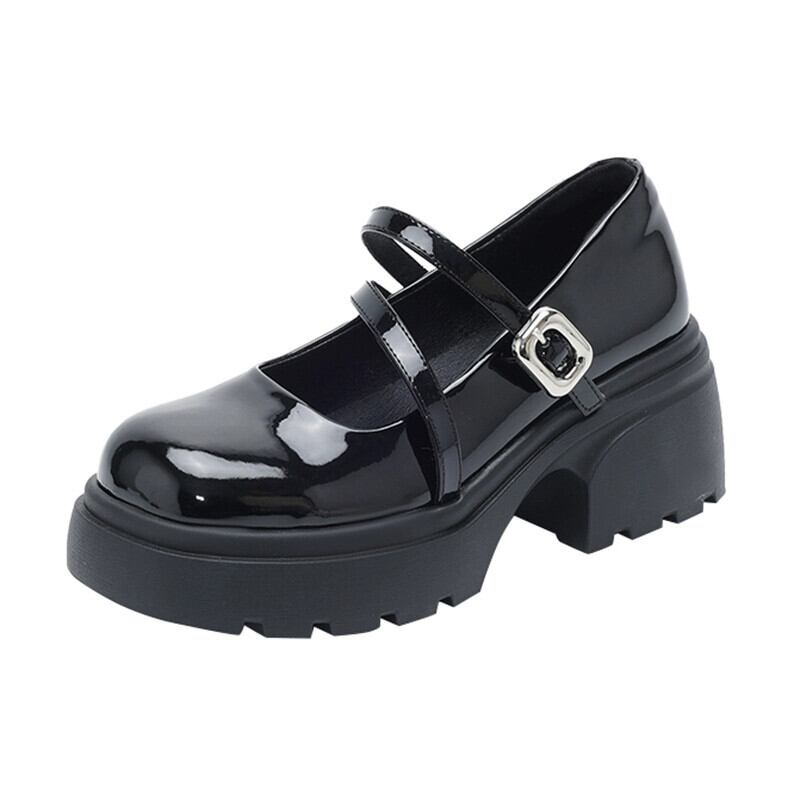 Jia Bufake メリージェーンシューズ レディース 2024 春 甘くて多用途な小さな革靴、太いヒールとスカート付き 大人ガーリー スウィート キュート カジュアル スプリング 春物 レザー jxjxf9081045190
