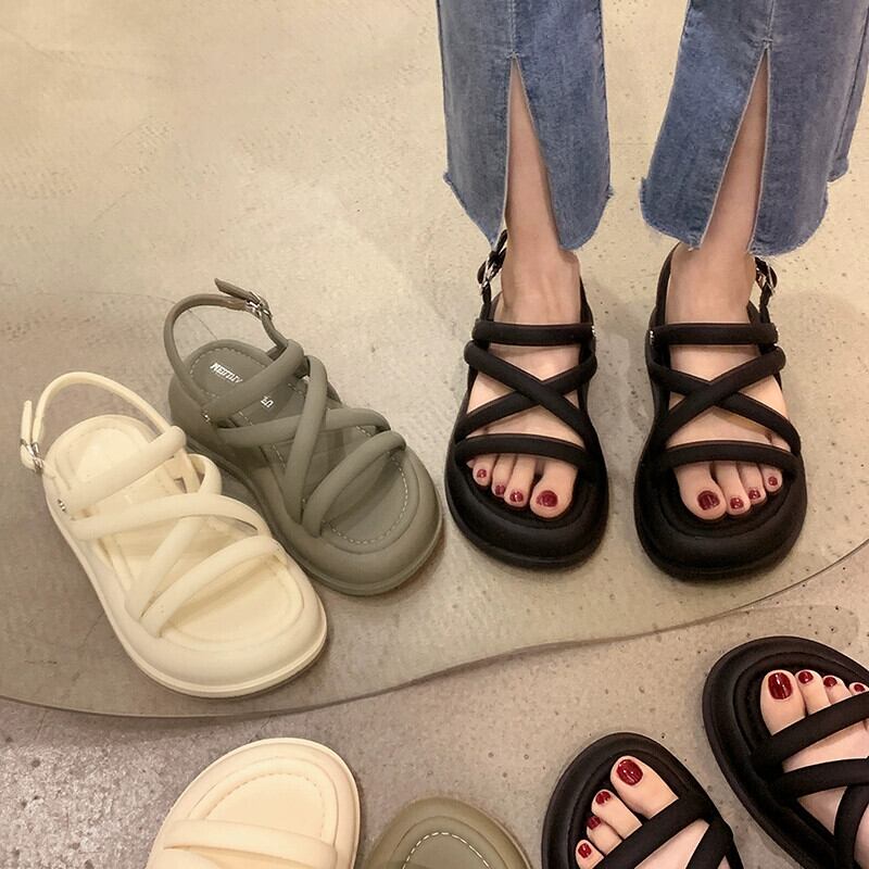 Jia Bujia レディースサンダル 2024 春の新スタイルネットセレブ超人気多用途学生厚底カジュアルローマンビーチシューズ 靴 スプリング 春物 jxjxf25400014601