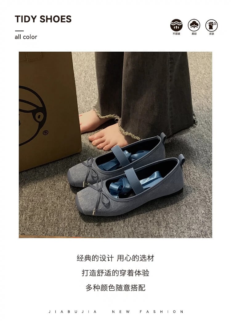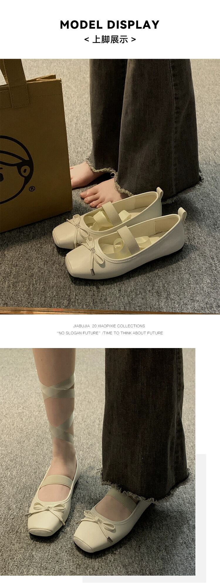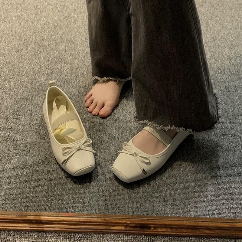 Jia Bufake シングルシューズの女性 2024 春の新しい気質弓フレンチスタイルの穏やかで多用途なインターネット有名人のフラットバレエシューズ 靴 リボン スプリング 春物 jxjxf5119552900