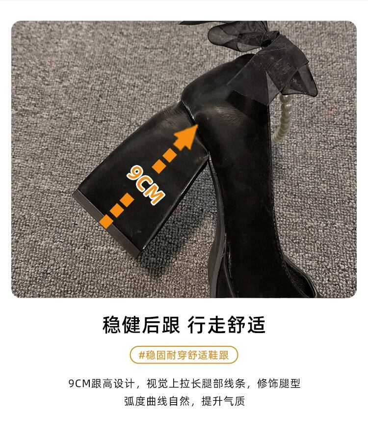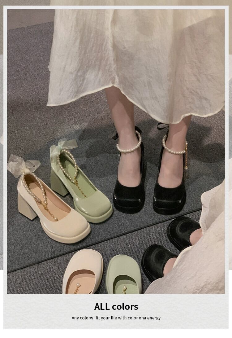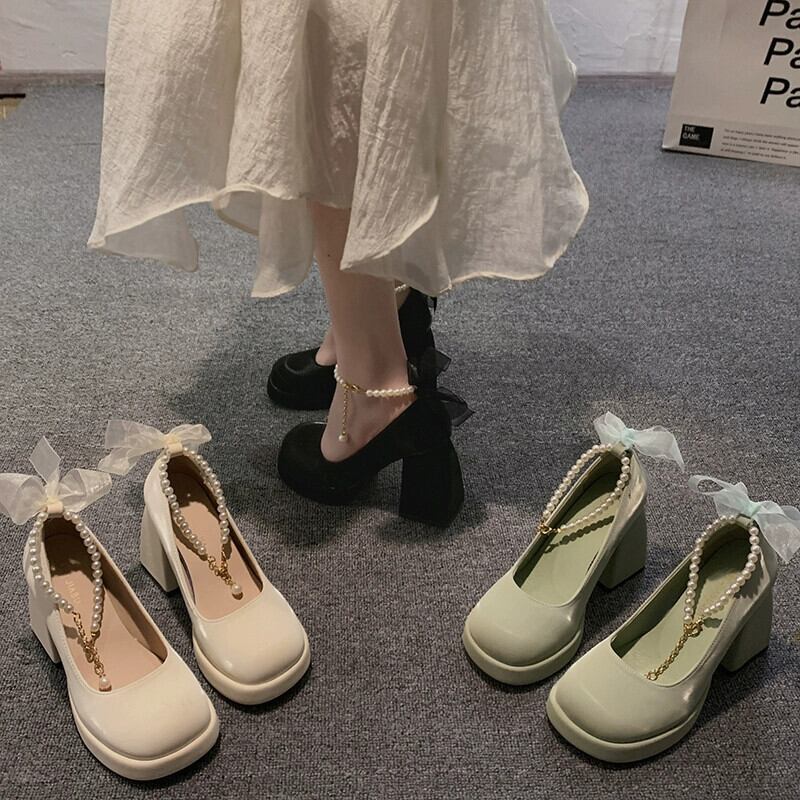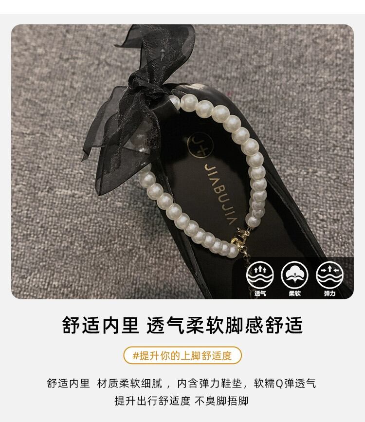 Jia Bufake ハイヒールの靴の女性 2024 春と秋の新しい気質妖精の真珠のリボンとスカートメリージェーン靴 シューズ スプリング 春物 オータム 秋物 パール jxjxf85904667006