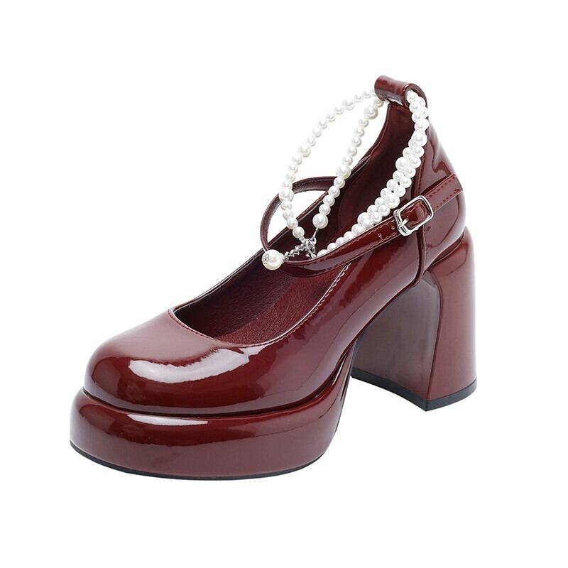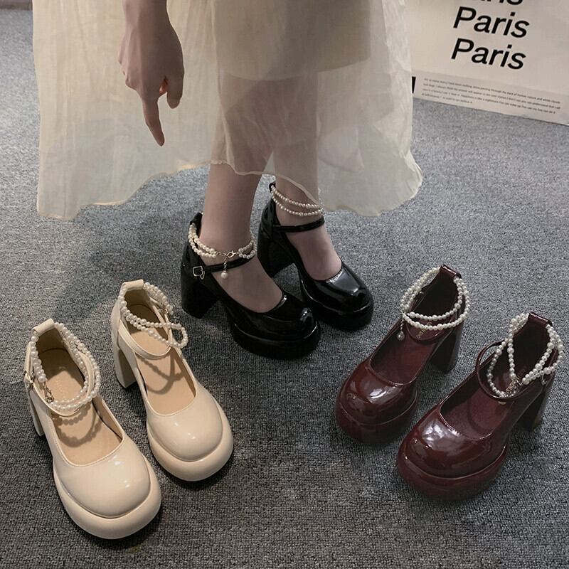 Jia Bujia インターネット有名人のシングルシューズの女性 2024 春の新レトロファッションパール小さなハイヒールスタイルの小さな革靴 スプリング 春物 レザー 真珠 jxjxf80544585637