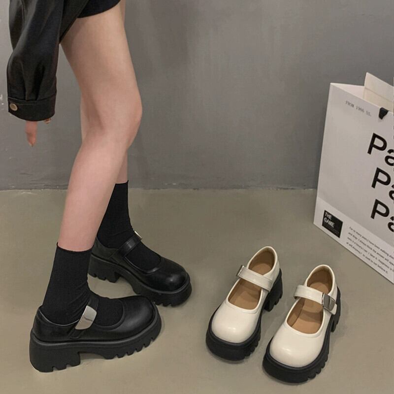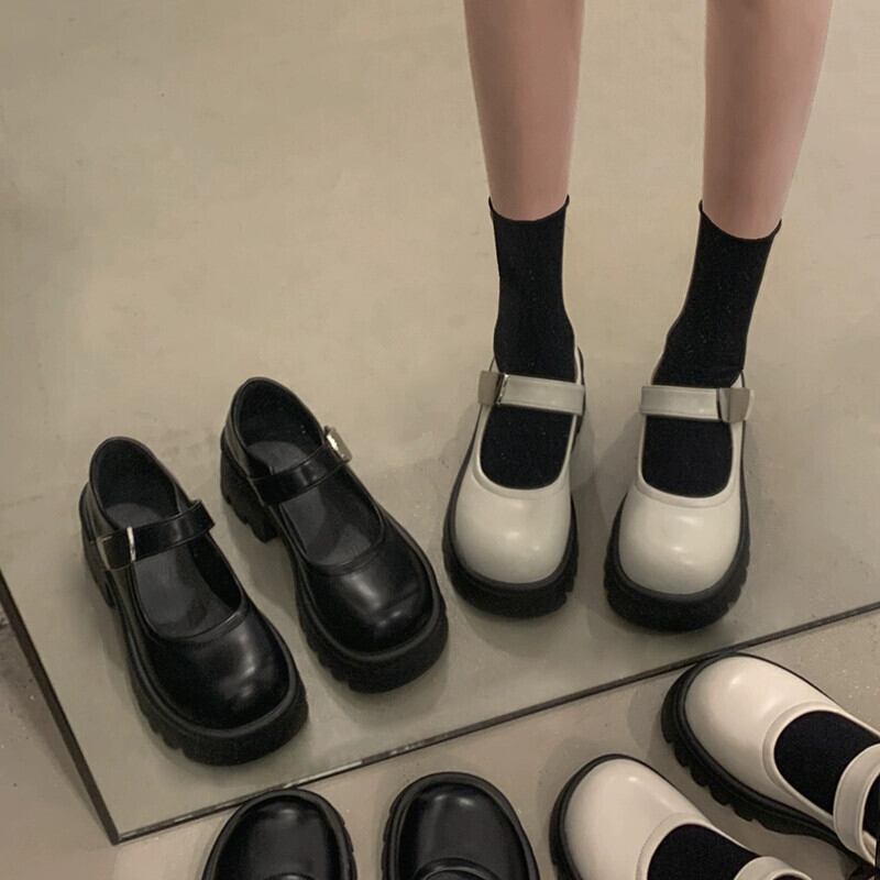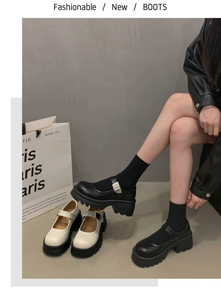 Jia Bujia スタイルシングルシューズ女性 2024 春と秋の新スタイルのスーパーレトロファッションベルクロ厚底メリージェーンシューズ 靴 スプリング 春物 オータム 秋物 jxjxf648688882