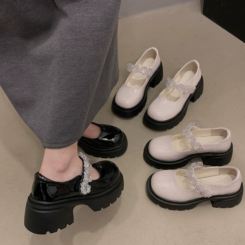 Jia Bujia インターネット有名人のシングルシューズの女性 2024 春の新スタイル多用途レトロ妖精ファッション気質厚底の小さな革靴 スプリング 春物 レザー jxjxf59838521497