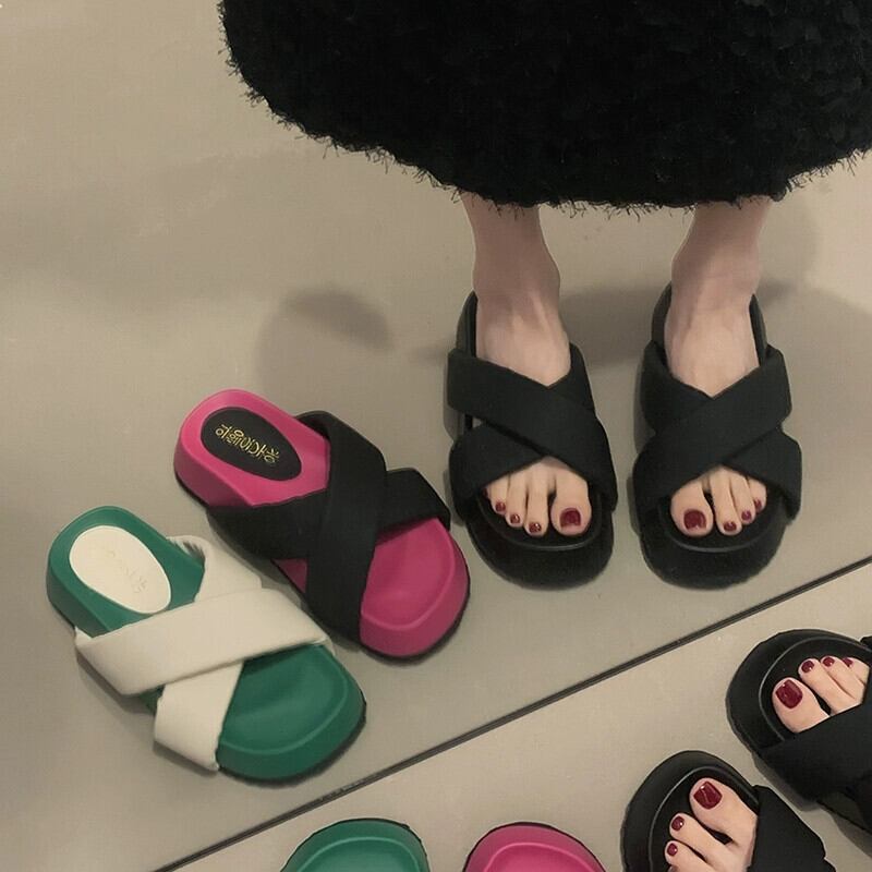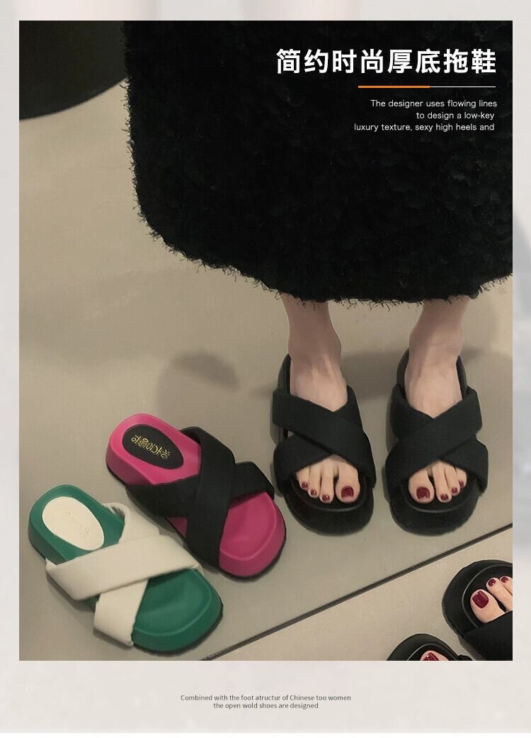 Jia Bujia ビーチサンダル レディース 2024 春新作 インターネット セレブ ファッション トレンド レトロ 厚底 カジュアル サンダル 靴 シューズ スプリング 春物 jxjxf90434754174