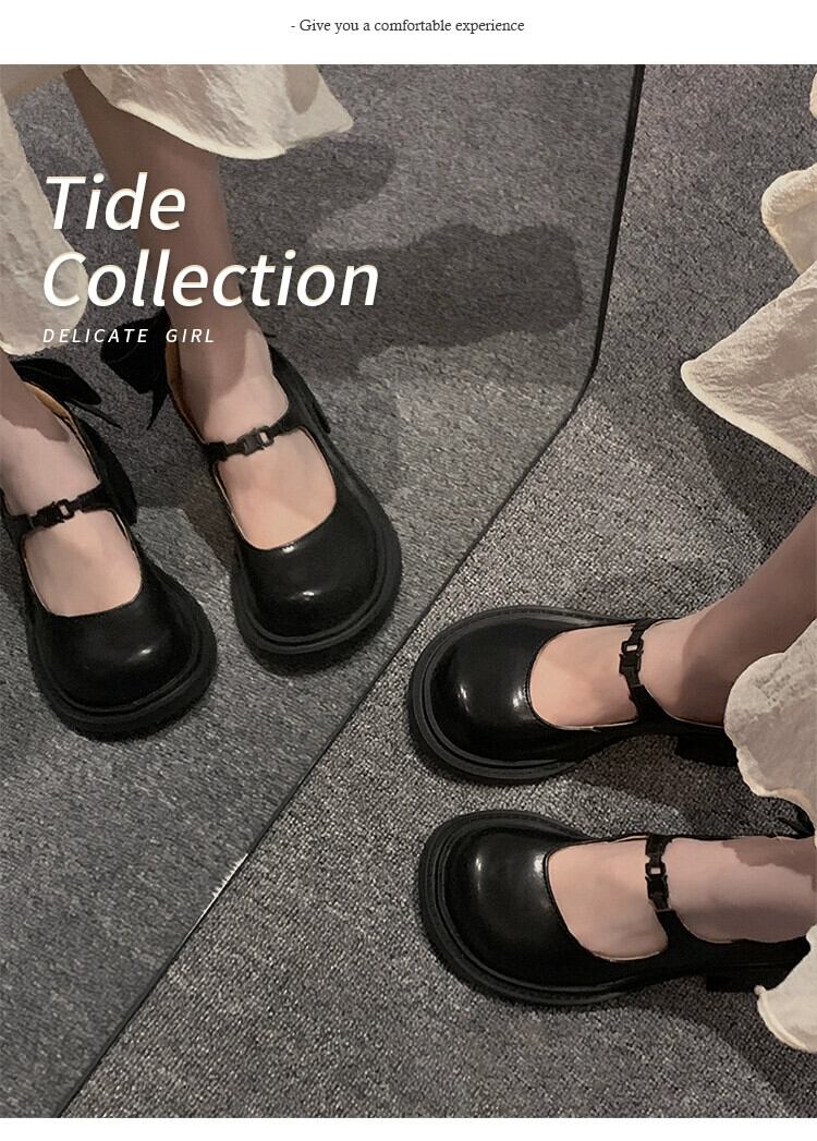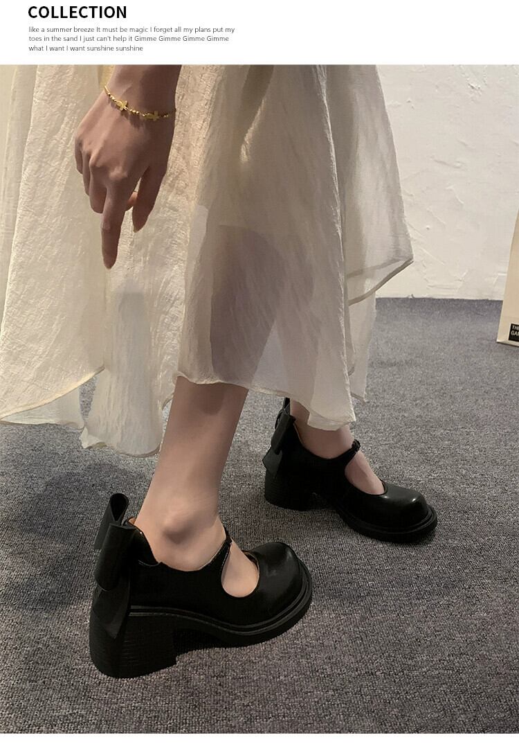 Jia Bujie のシングルシューズの女性 2024 春の新スーパーレトロスカート付き小さな厚いヒールメリージェーンの靴 スプリング 春物 jxjxf85142428240