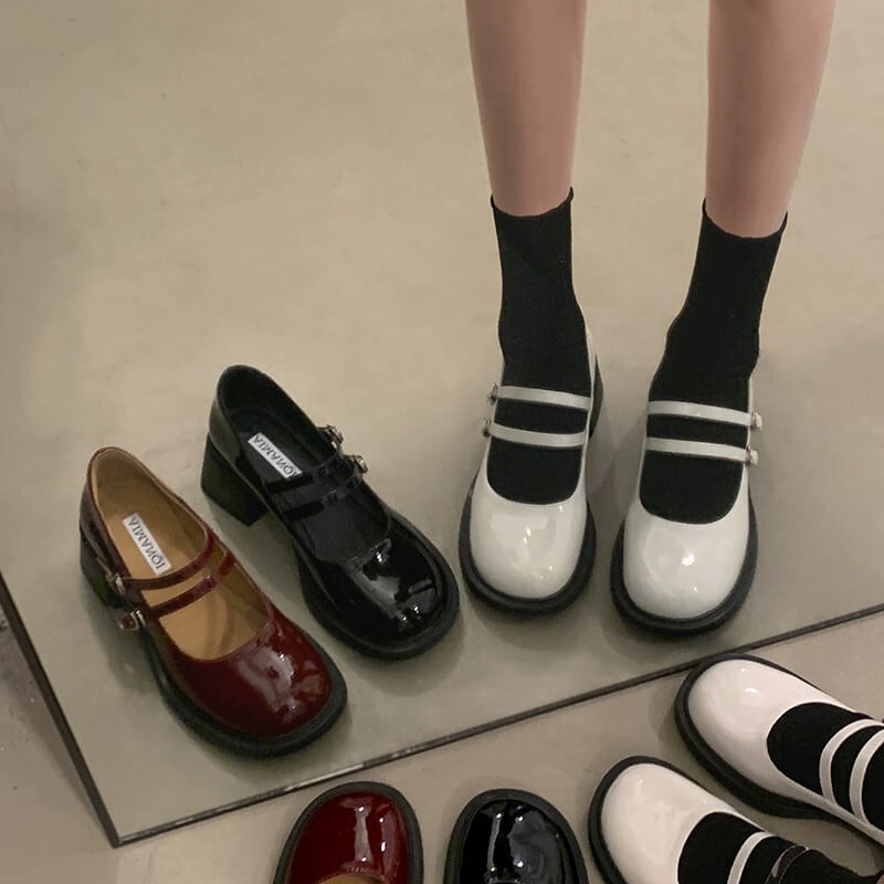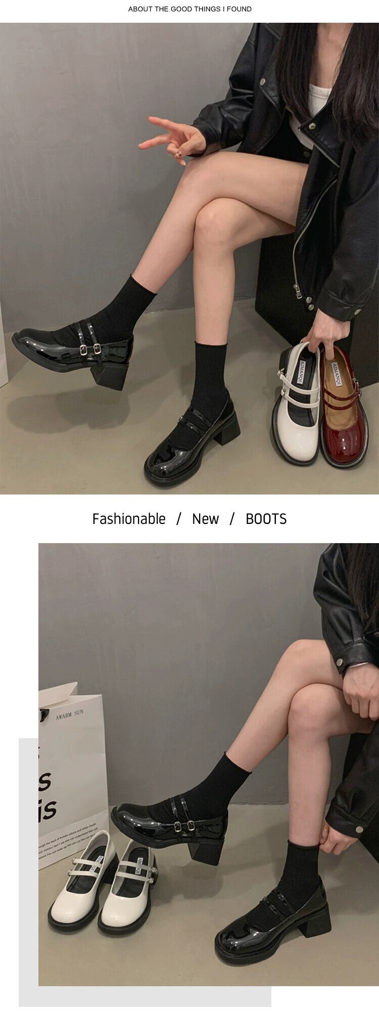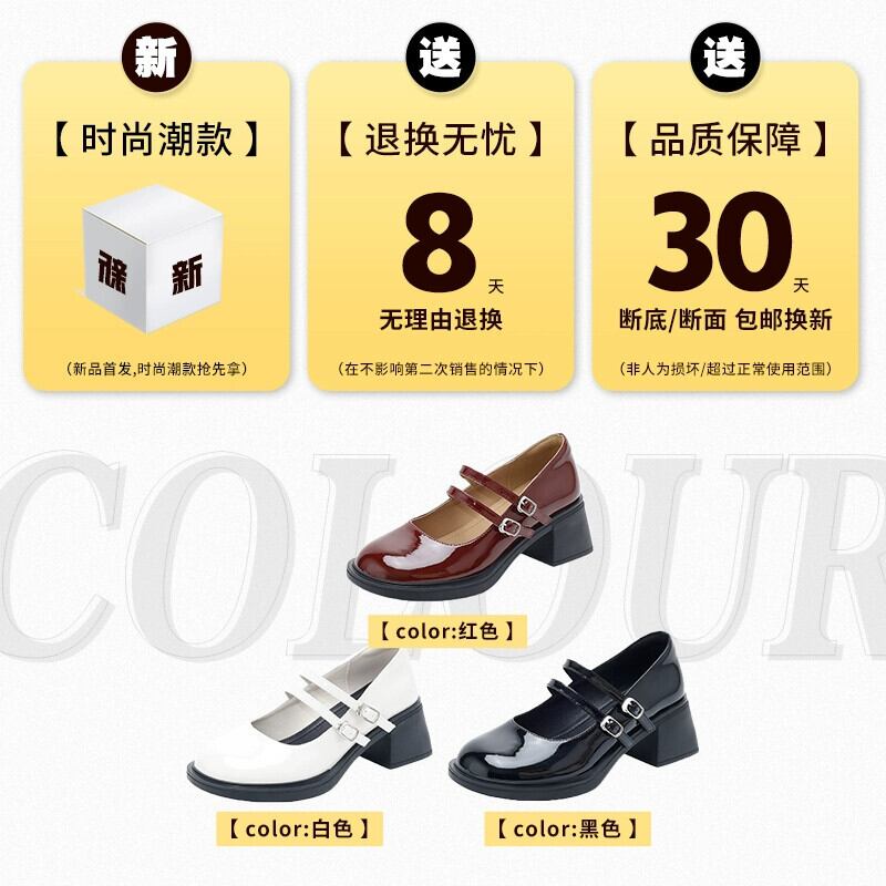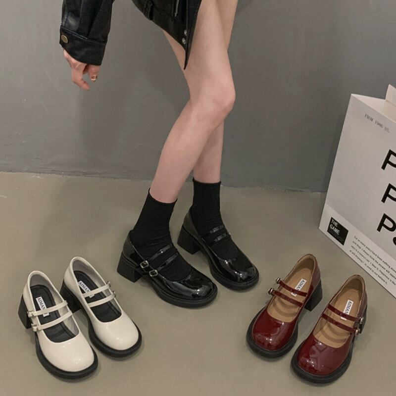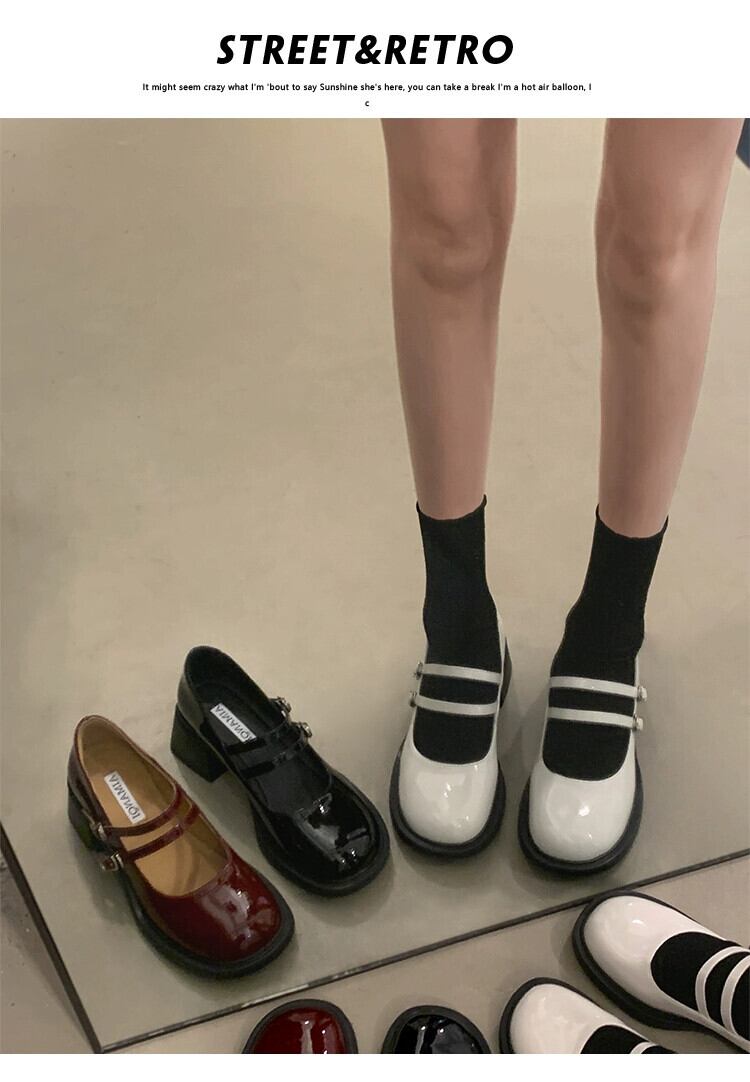 Jia Bujia インターネット有名人のシングルシューズの女性 2024 春の新レトロファッション小さな厚いヒールメリージェーンの靴 スプリング 春物 jxjxf25076832297