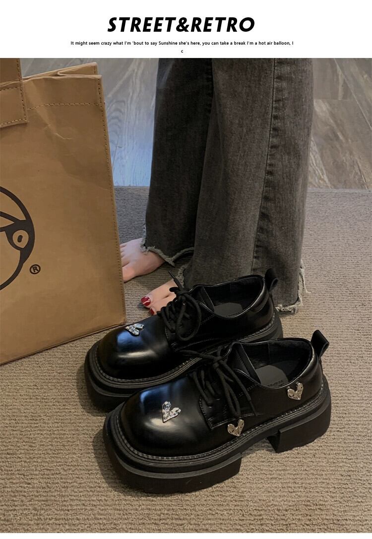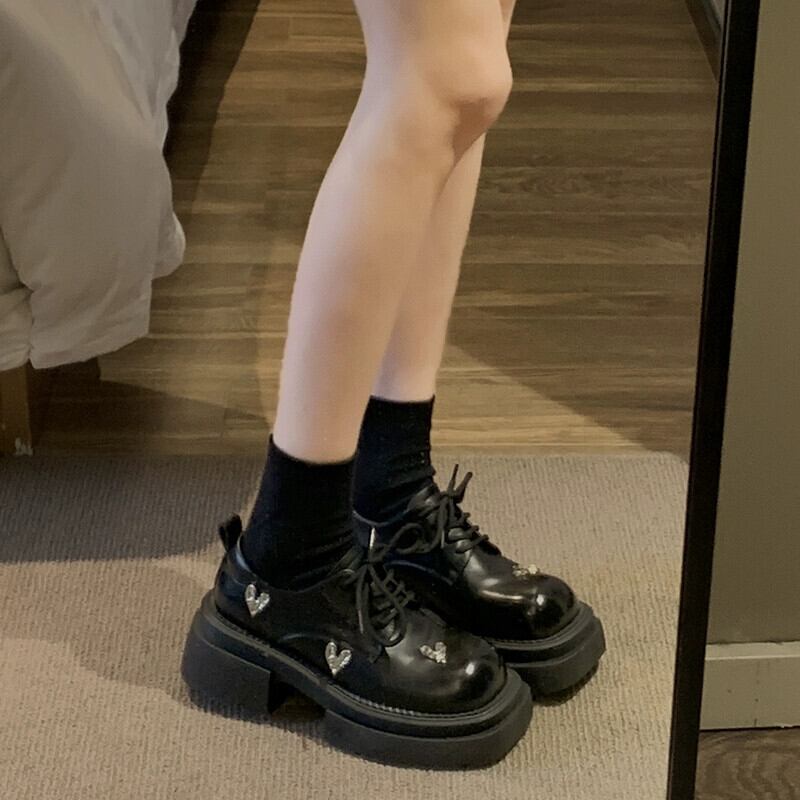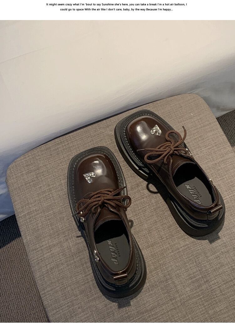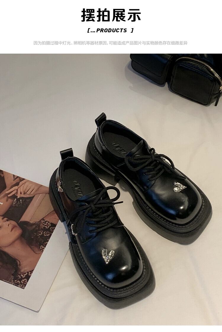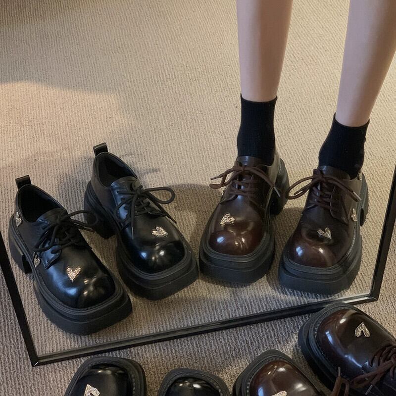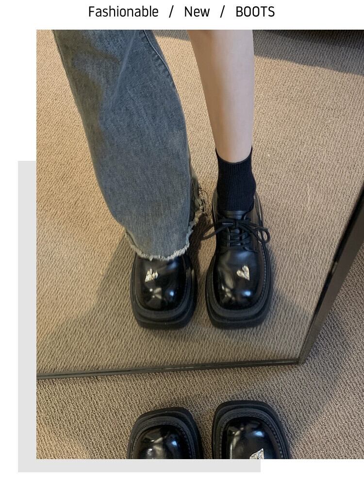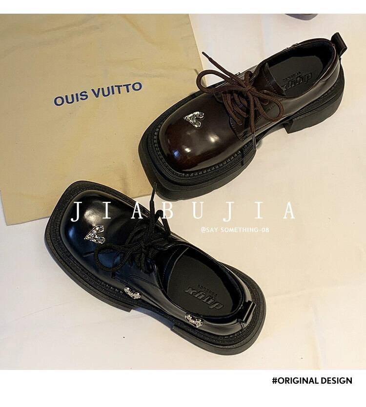 Jiabu ホリデーシューズ レディース 2024 春 レトロメタリック 英国スタイル スクエアトゥ 厚底 レザーシューズ 靴 スプリング 春物 スクウェア jxjxf27520857908
