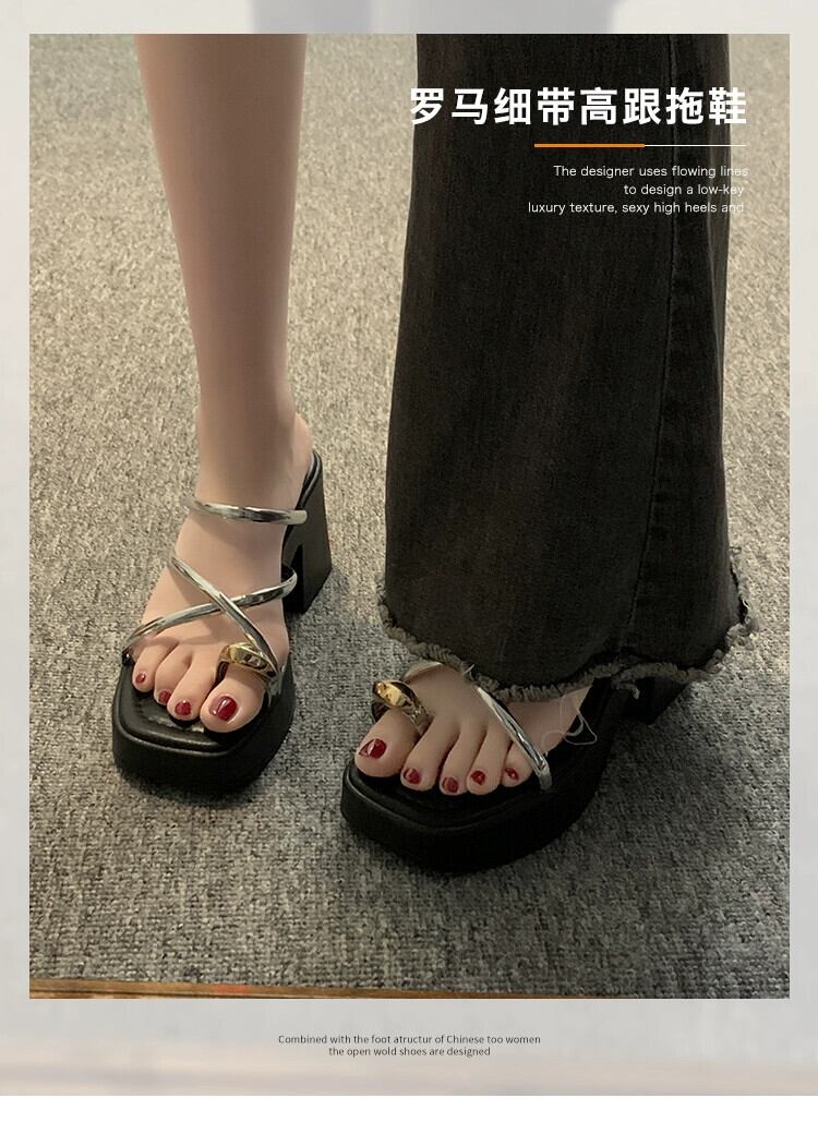 Jia Bu 偽ハイヒールスリッパレディースアウター 2024 春の新レトロ多用途金属小男のスリッパ 靴 シューズ ミュール スプリング 春物 jxjxf99868495277