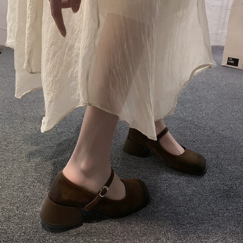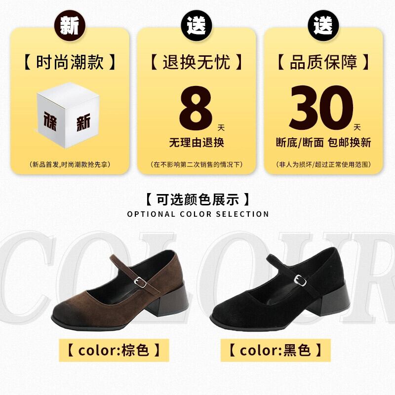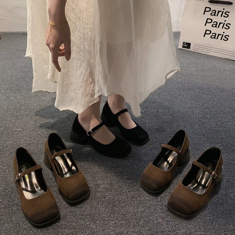 Jia Bujia フレンチスタイルの靴の女性 2024 春の新レトロファッション気質多用途太いヒールスクエアトゥメリージェーン靴 シューズ スプリング 春物 スクウェア jxjxf72207887198