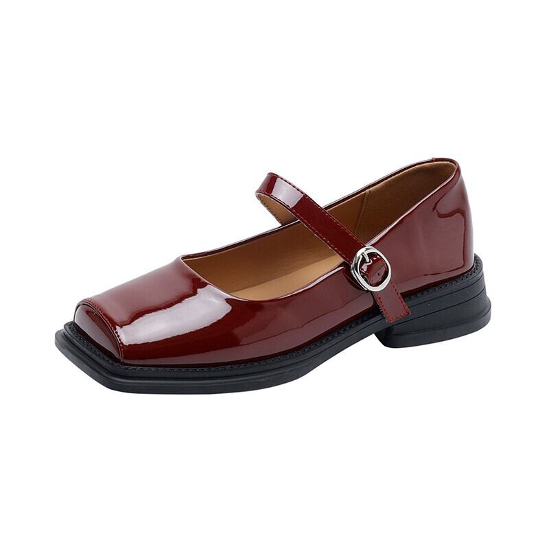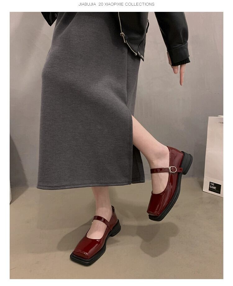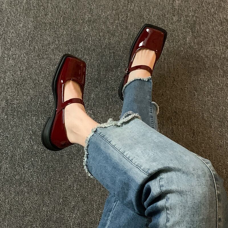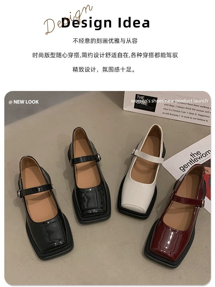 Jia Bujia スクエアトゥシングルシューズ女性 2024 春の新ファッションレトロマッチングスカートローヒールフランスの小さな革靴 スプリング 春物 レザー スクウェア jxjxf21849384802