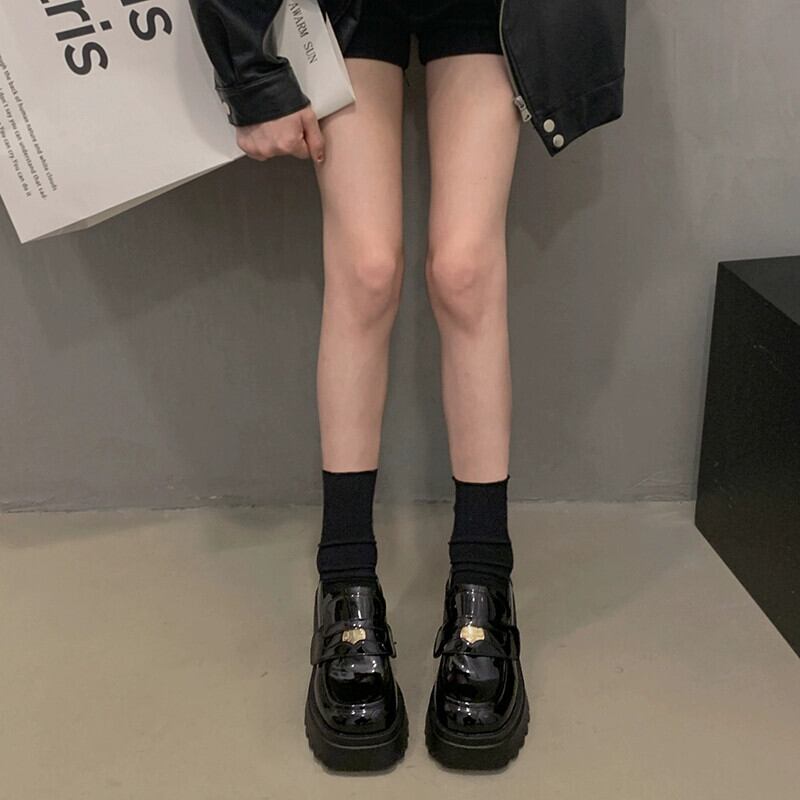 Jia Bufake ローファー女性の 2024 春インターネット有名人通勤レトロ小さな厚い底英国スタイルの小さな革靴 シューズ スプリング 春物 レザー jxjxf18181475816