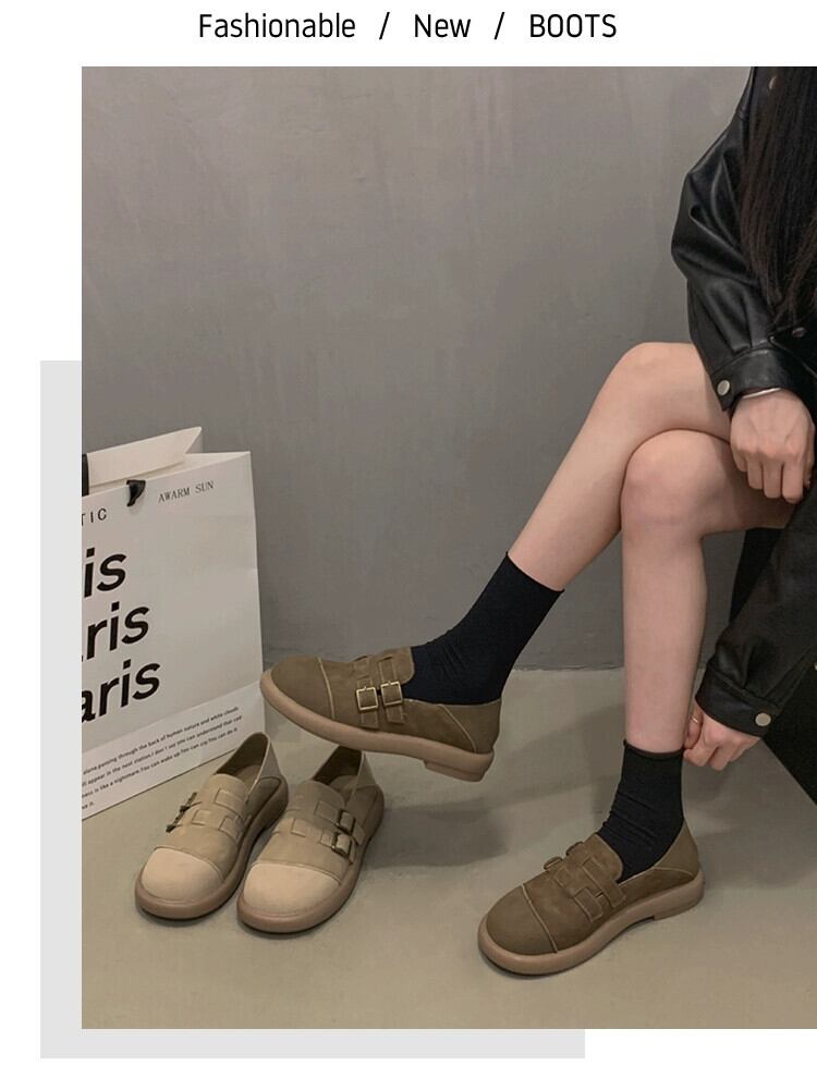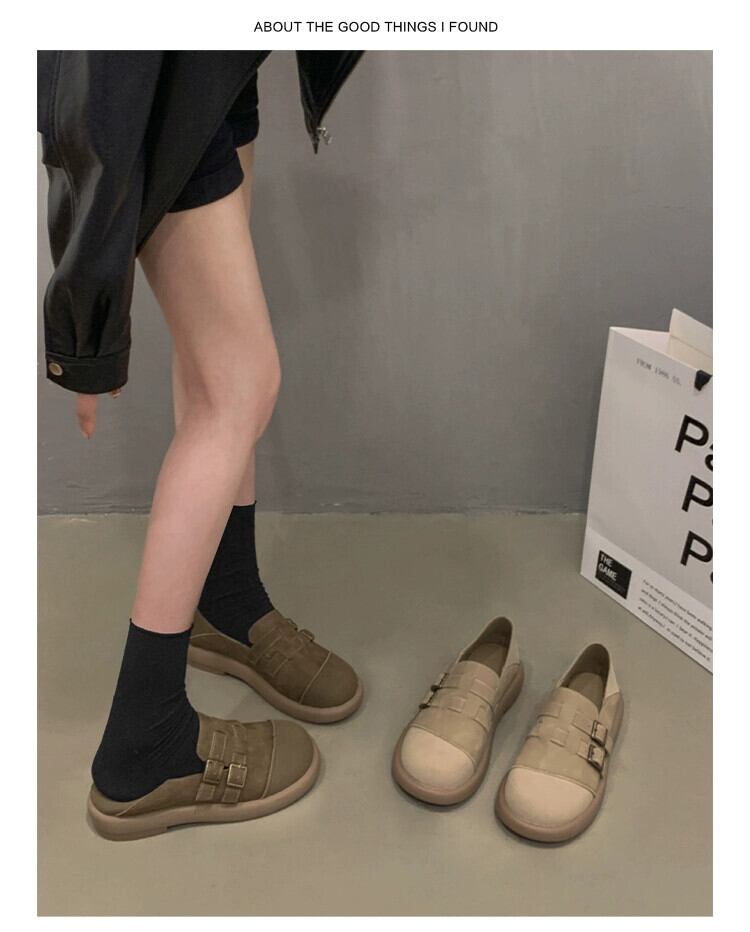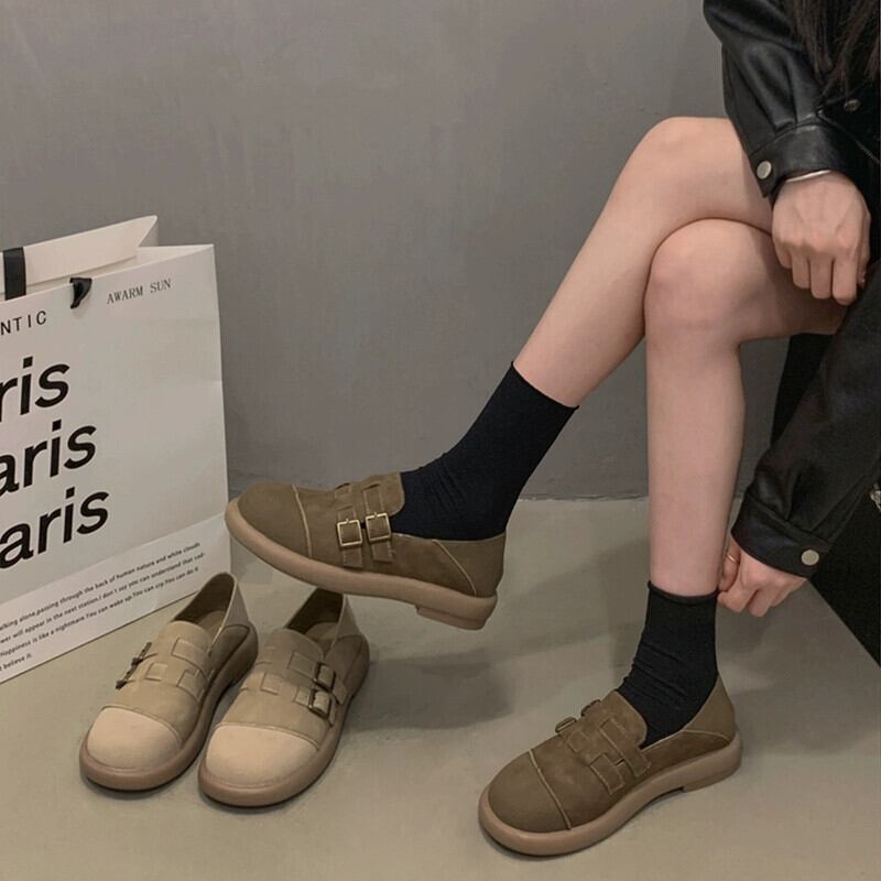 Jia Bujia 婦人靴 2024 春と秋の多用途レトロシンプルなベルトバックルフラットローファー シューズ スプリング 春物 オータム 秋物 ハーネス jxjxf30184492299