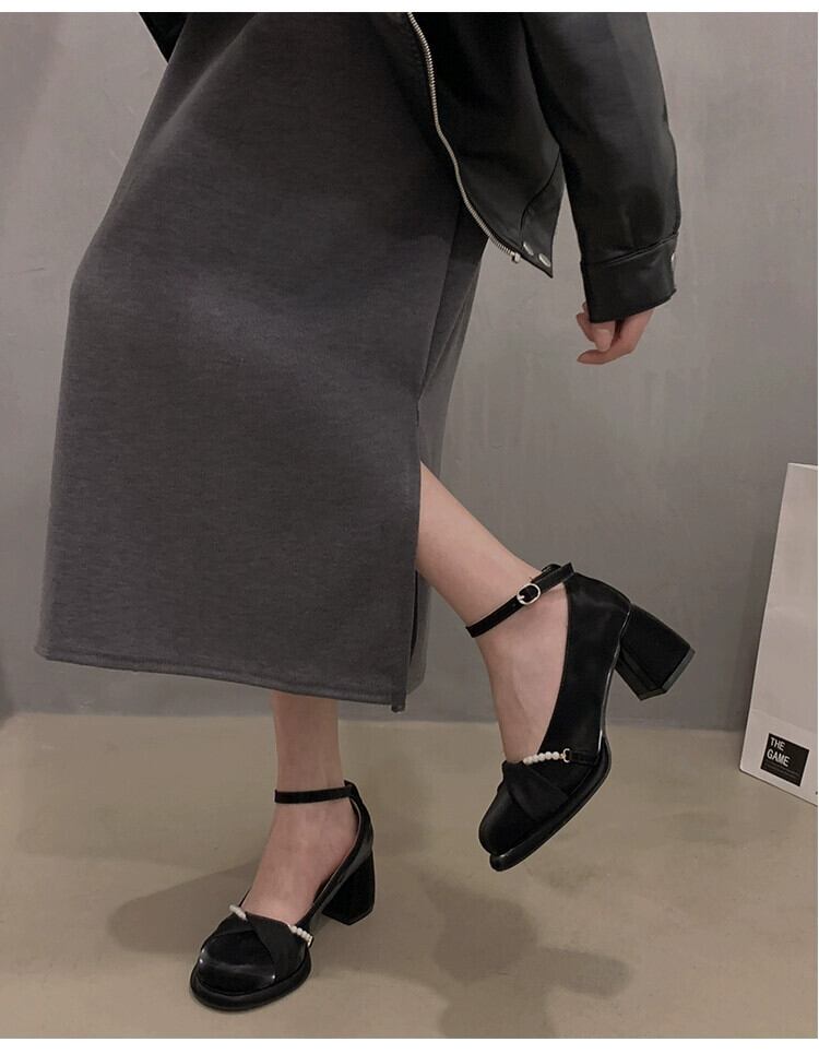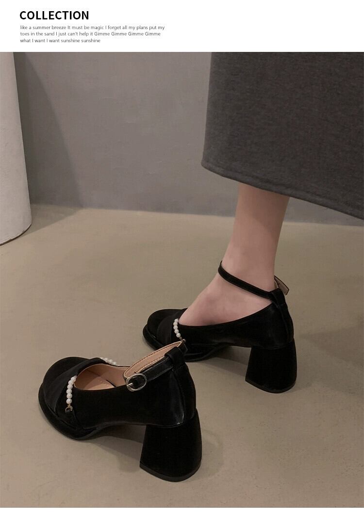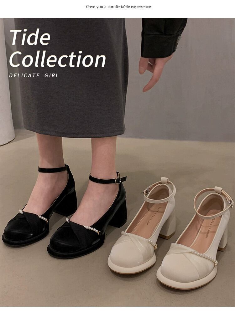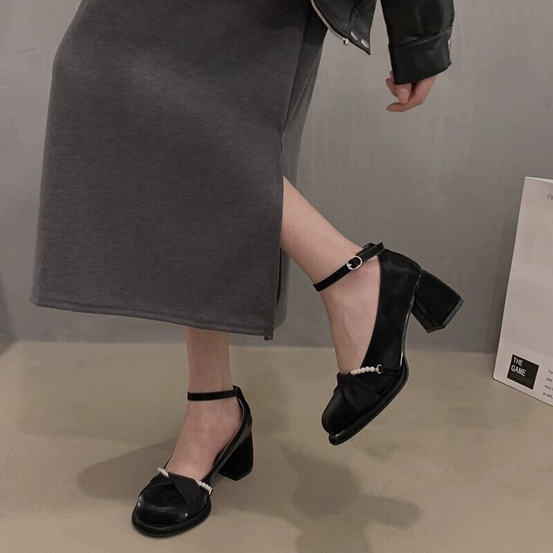 Jia Bujia 婦人靴 2024 春のインターネットセレブの真珠とスカートヒールのメリージェーンの靴 シューズ スプリング 春物 パール jxjxf35615356409