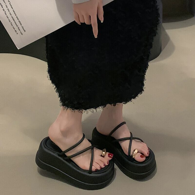 Jia Bujia インターネット有名人スリッパ女性の上着 2024 春の新ファッションレトロ小人プラットフォーム厚底サンダル ミュール 靴 シューズ スプリング 春物 jxjxf73309370141