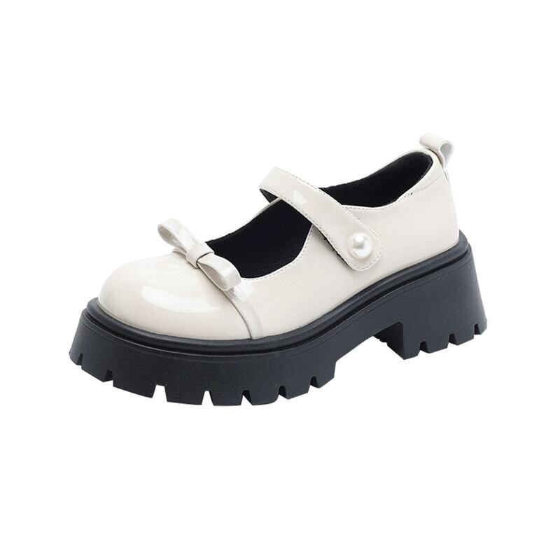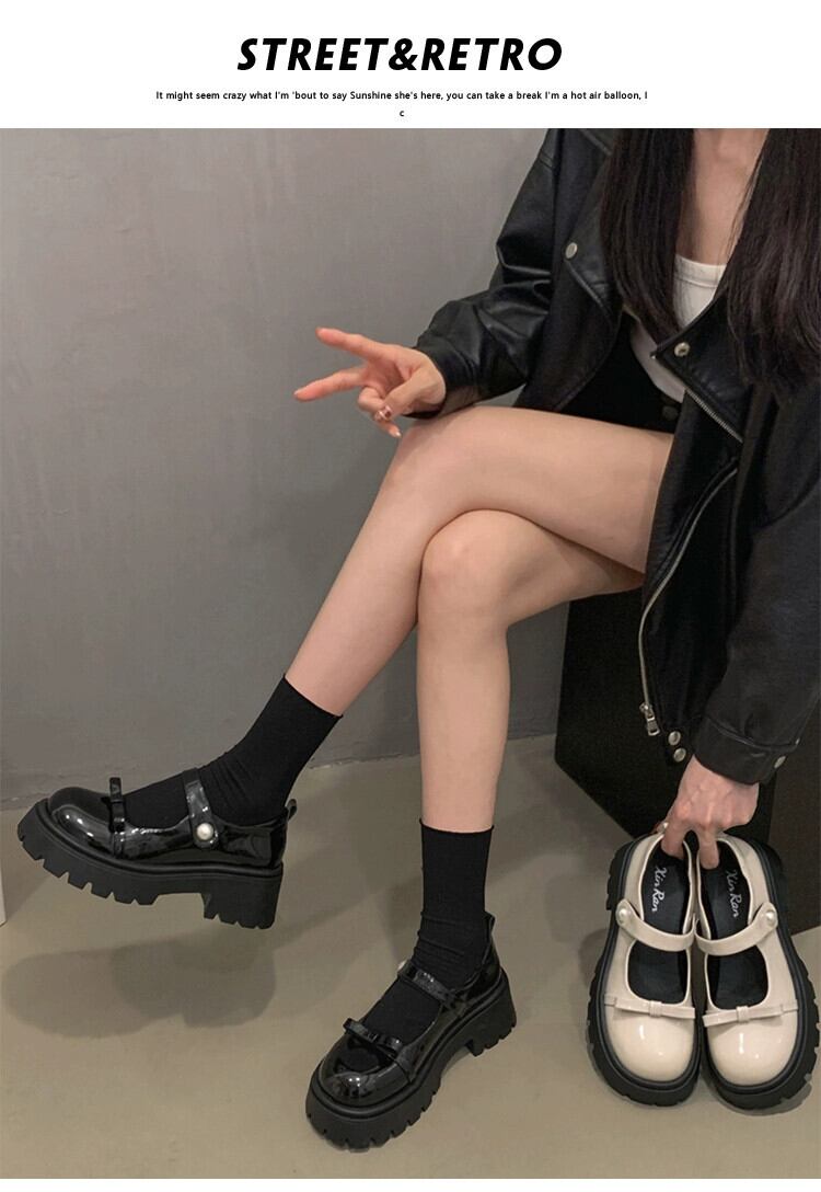 Jia Bujie 小さな革靴の女性 2024 春の新スタイルのスカート、ファッショナブルで甘い厚底の浅い口のメリージェーン靴 シューズ 大人ガーリー スウィート キュート カジュアル スプリング 春物 レザー jxjxf12330042469