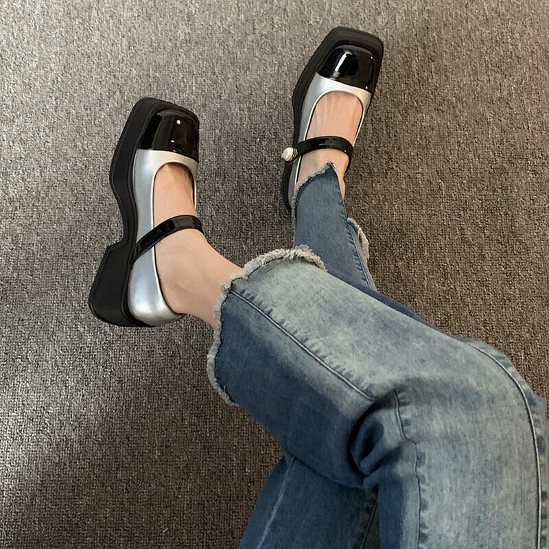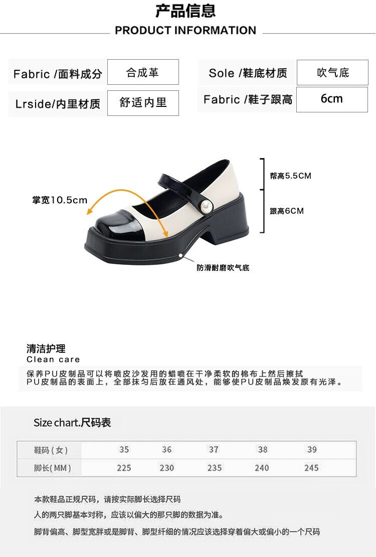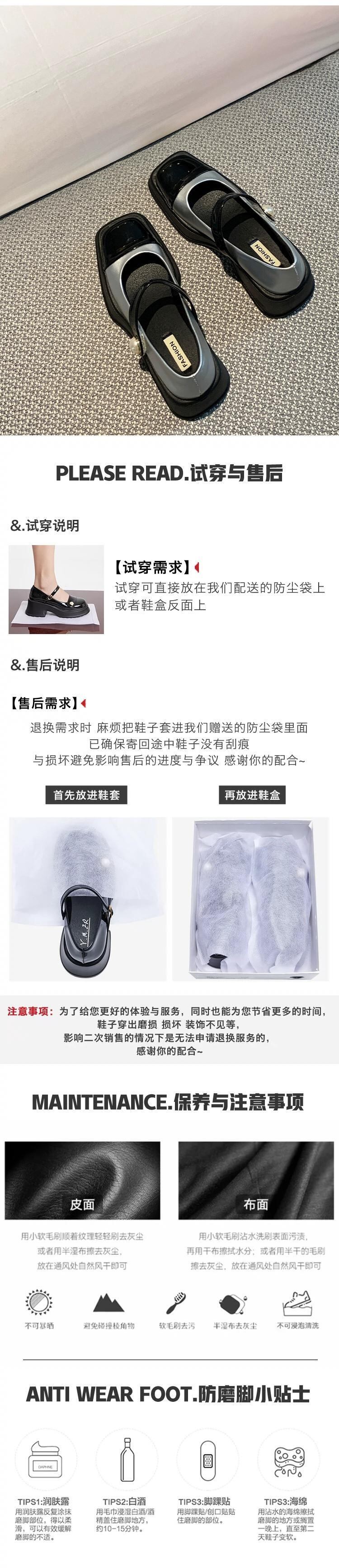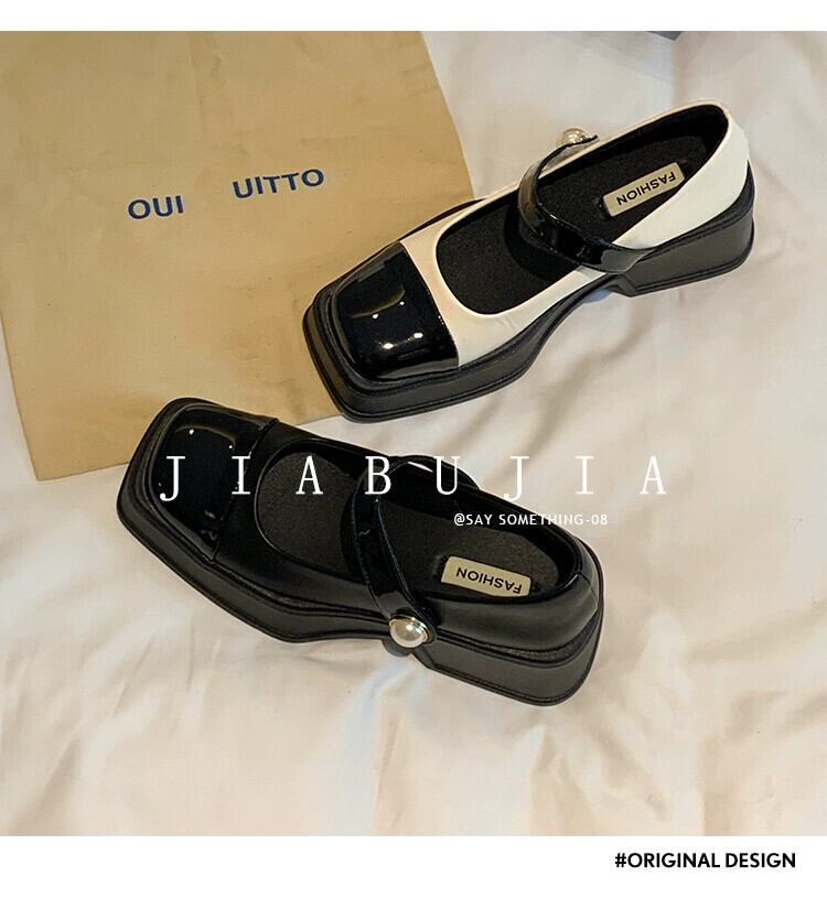 Jia Bufake メリージェーンの靴の女性の 2024 春の気質パールフレンチレトロスクエアトゥ太いヒールの小さな革の靴 シューズ スプリング 春物 レザー 真珠 スクウェア jxjxf32445920449
