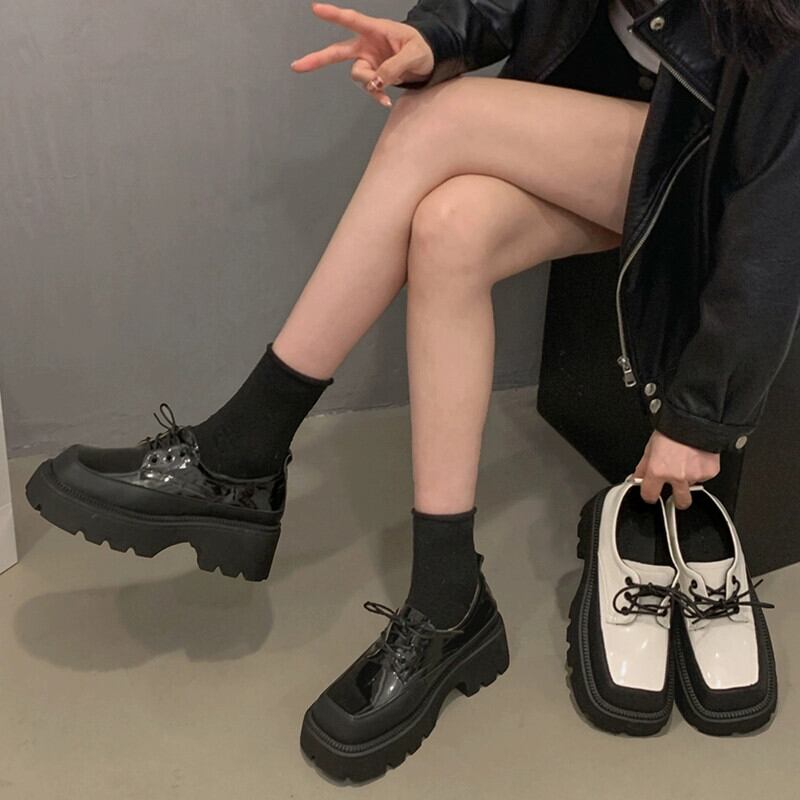 Jia Bufake シングルシューズ女性 2024 春と秋の新ファッションレトロ多用途小型厚底スクエアトゥ小さな革靴 スプリング 春物 オータム 秋物 レザー スクウェア jxjxf98100316106