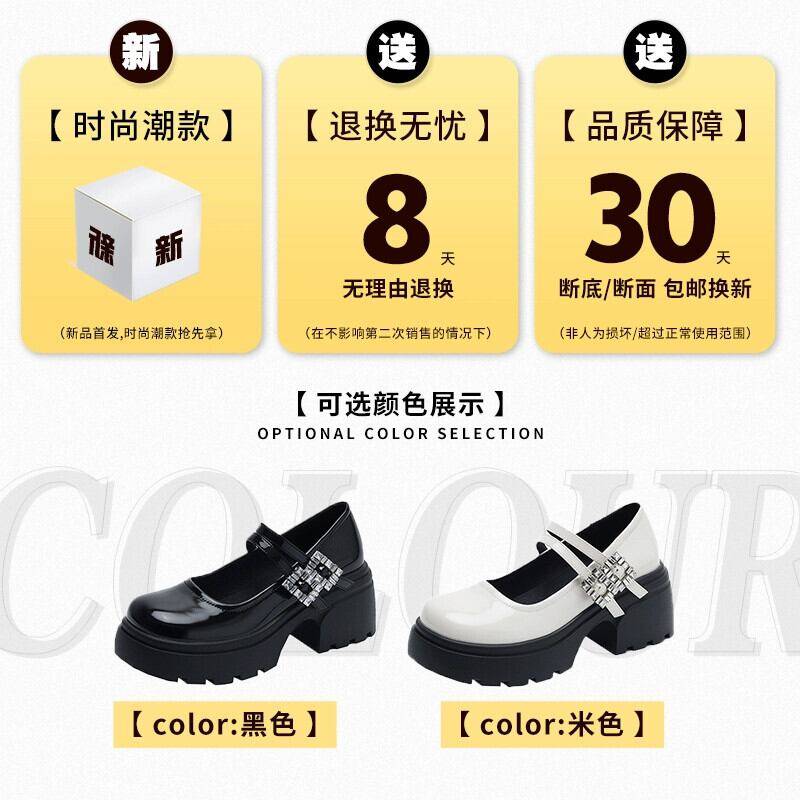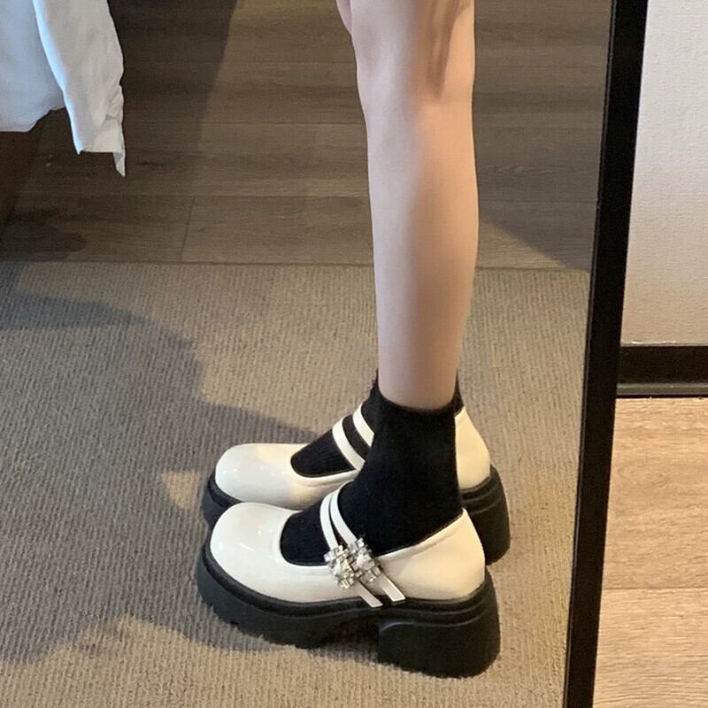 Jia Bufake メリージェーンの靴の女性の 2024 春スタイルの靴多用途小さな太いヒールレトロ小さな革の靴 シューズ スプリング 春物 レザー jxjxf25375455162