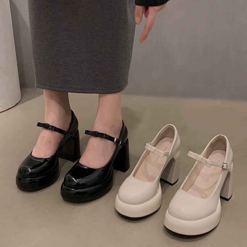 Jia Bujia インターネット有名人のシングルシューズの女性 2024 春の新ファッションとスカート浅いハイヒールのメリージェーンの靴 スプリング 春物 jxjxf64133332392